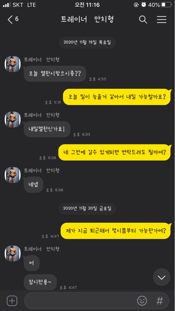 이전에도 pt를 여러번 해봤지만 단순히 운동정도를 도와주거나 시간 때우는게 목적인 경우가 많았던거 같습니다.
