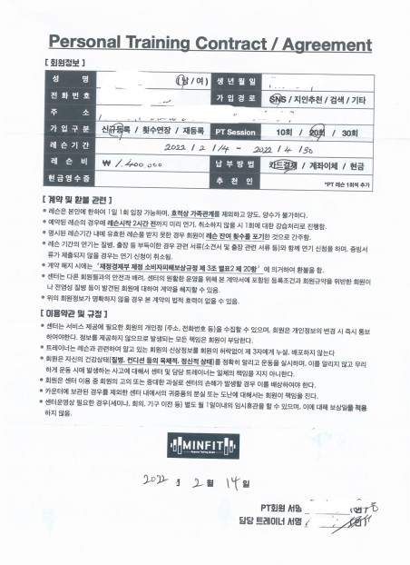 뿐만 아니라 식단도 하루에 세끼를 먹으라고 조언해주셔서 원래 규칙적이지 않던 식습관도 현재는 바로잡을 수 있게 되었습니다.체중감량 및 체력증진이라는 목적을 가지고 운동을 시작하게 되었는데 그 목적에 부합하는 수업을 진행해주셔서 몸의 변화가 눈에 보이고 느껴졌기 때문에 더욱 의지를 가지고 운동을 할 수 있게 되어 감사하게 생각하고 있습니다!20회 등록해서 약 3달간 PT 수강했습니다.