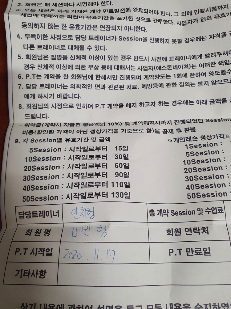 다른 곳에서 PT를 받았을 때 워낙