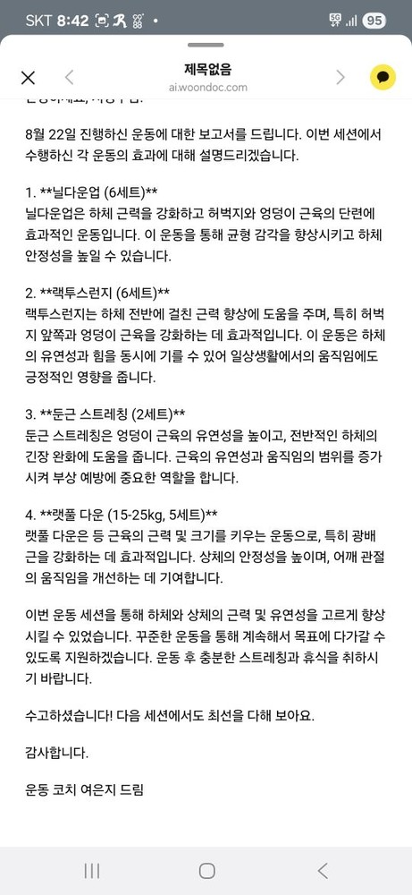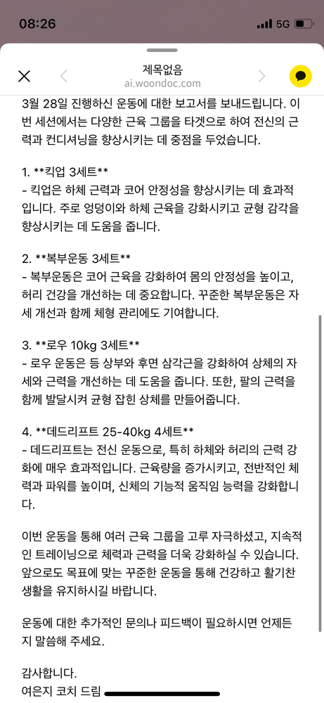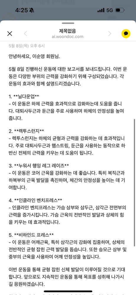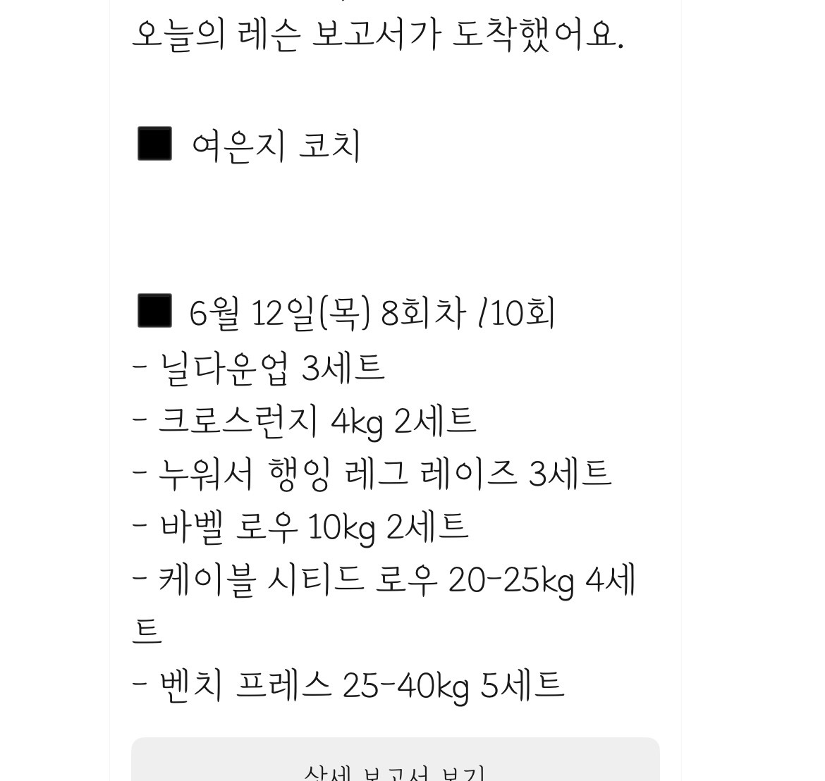 저는 단순히 몸만 바뀌는 운동이 아니라, 회원님께 긍정적인 에너지를 드릴 수 있는 시간이 되길 항상 바라고 있어요. 그렇게 느껴주셔서 너무 감사드립니다.
