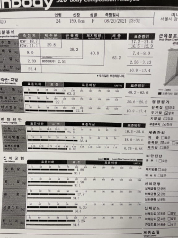 체중도 줄었지만 체지방은 빠지고 근육은 늘어서 매우만족합니다! 첫 상담할때 많은 고민도 있고 질문도했는데 친절하게 답해주셔서 감사했고, 운동하는 기간동안 격려와 응원에 끝까지 잘 해낼수 있었던것 같아요!! 운동법,사용법을 배우게됬고 혼자운동할수있는 법을 배워 감사하네요.