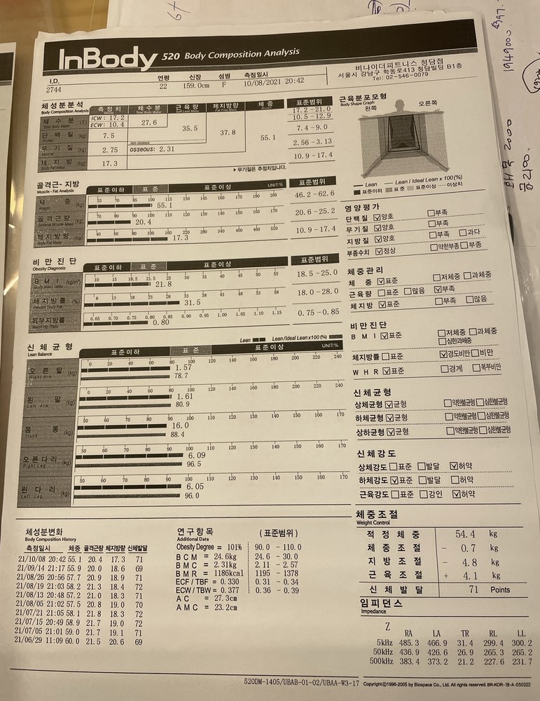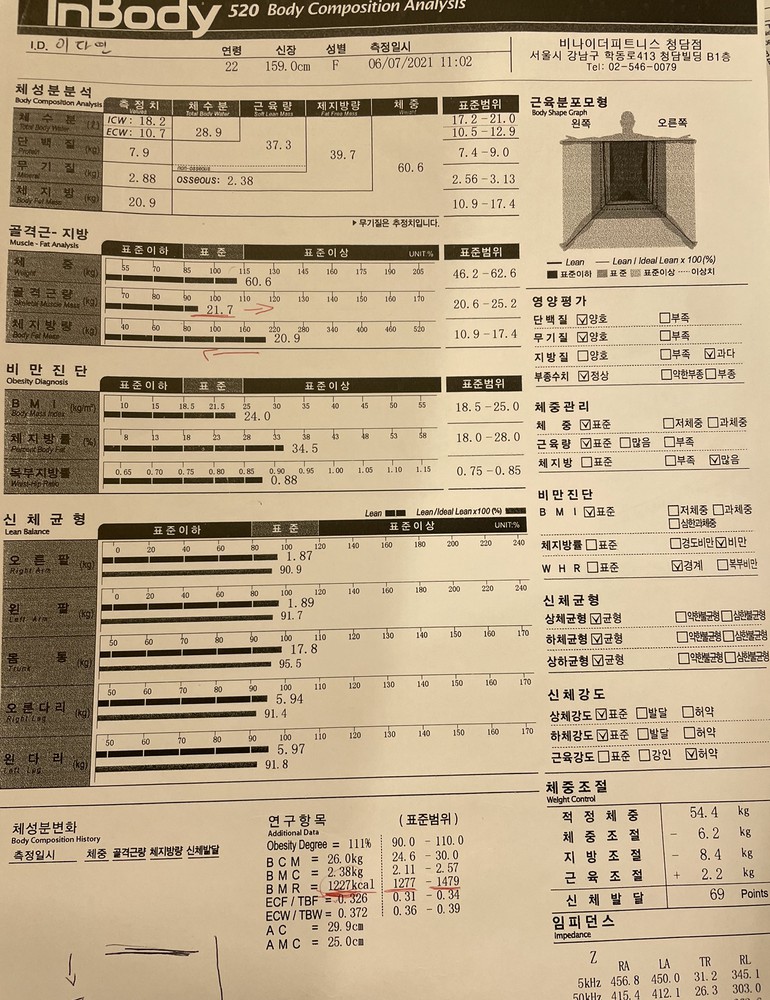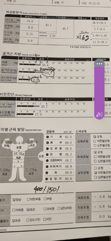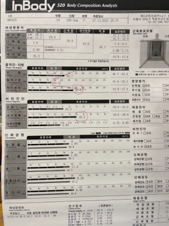 근육량도 많아졌고, 체지방량도 현저히