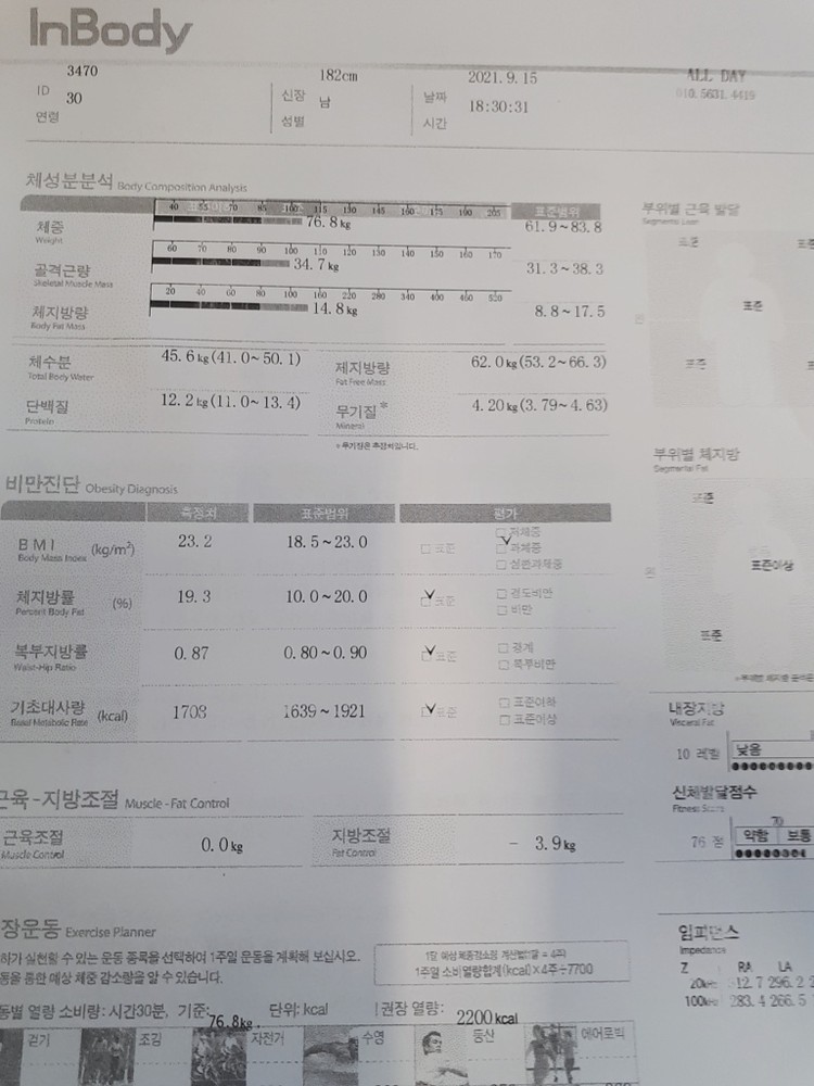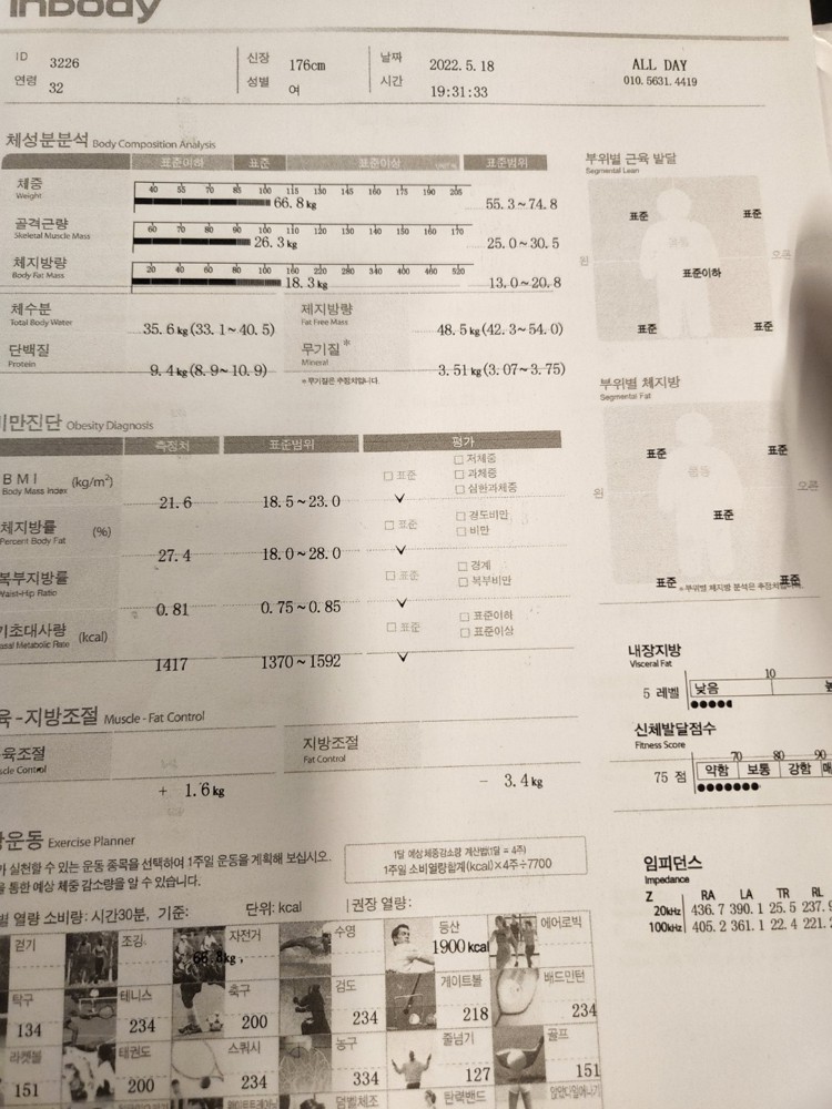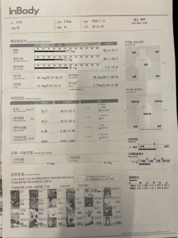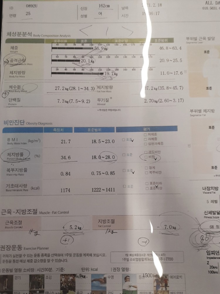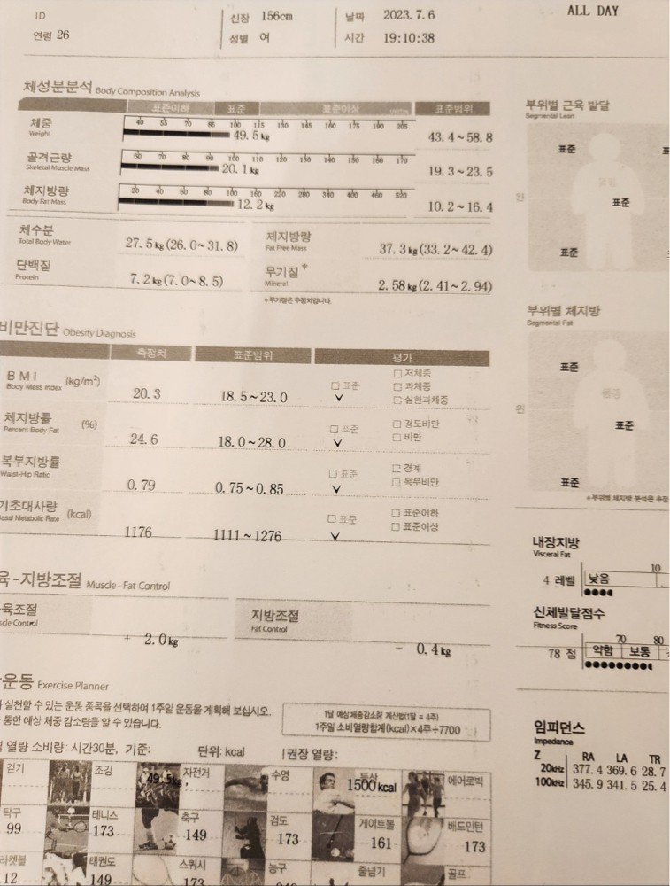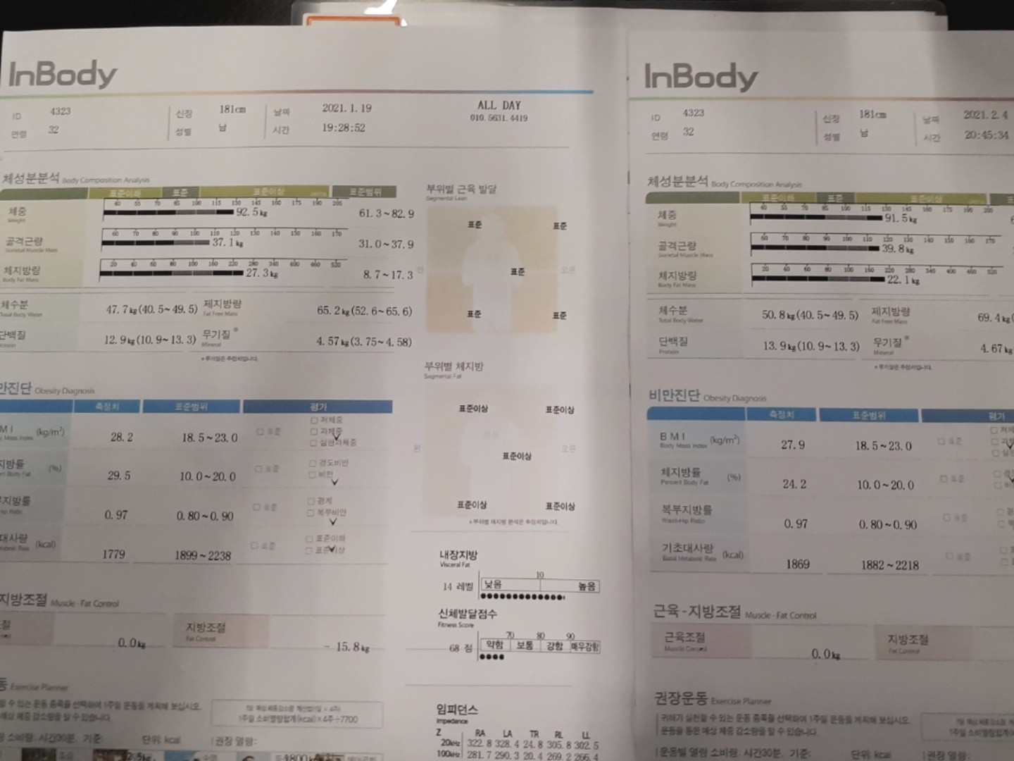 1주일만에 체지방이 2키로나 빠져서 준규쌤과 꾸준히 운동하면 제몸이 어떻게 변할지 너무 기대되고,