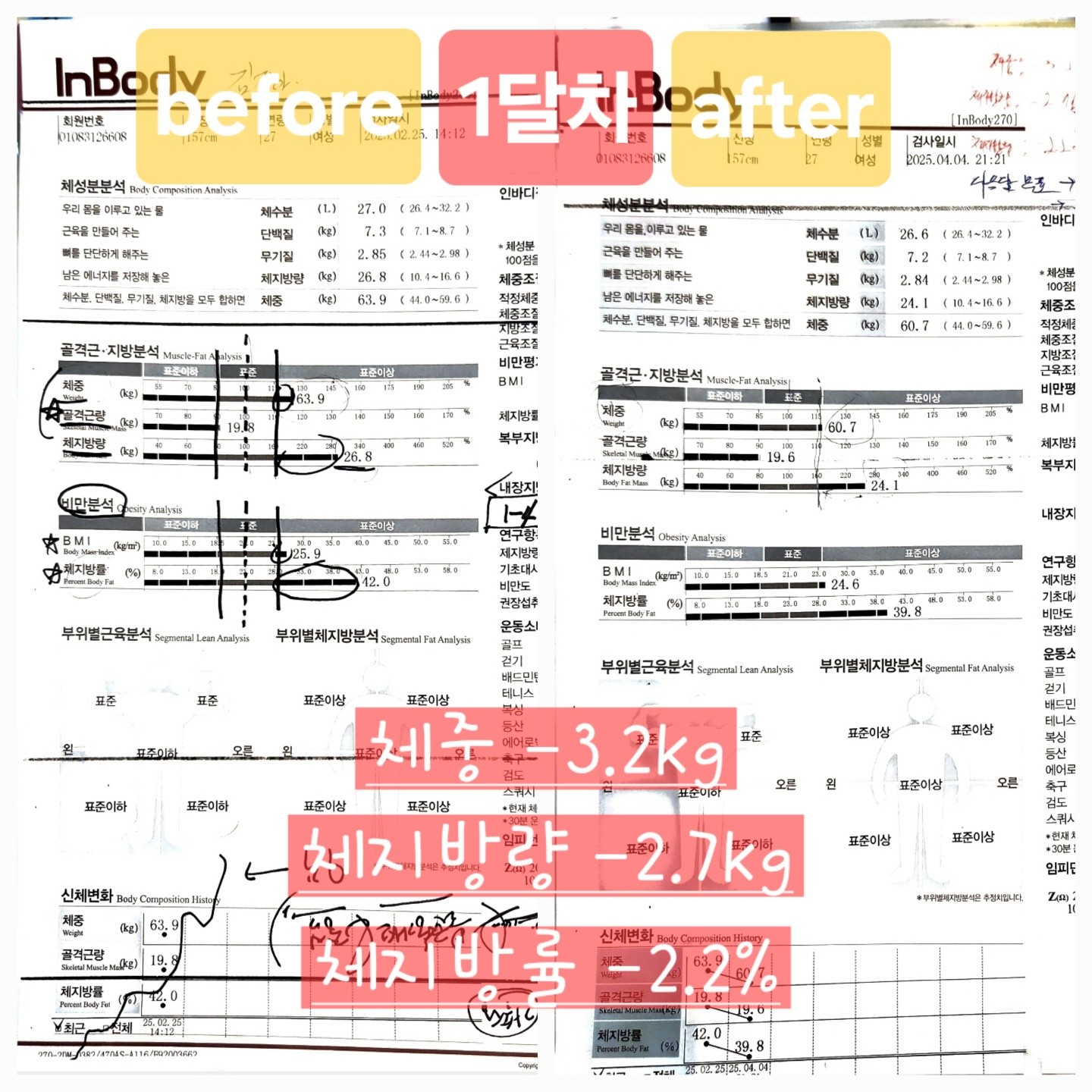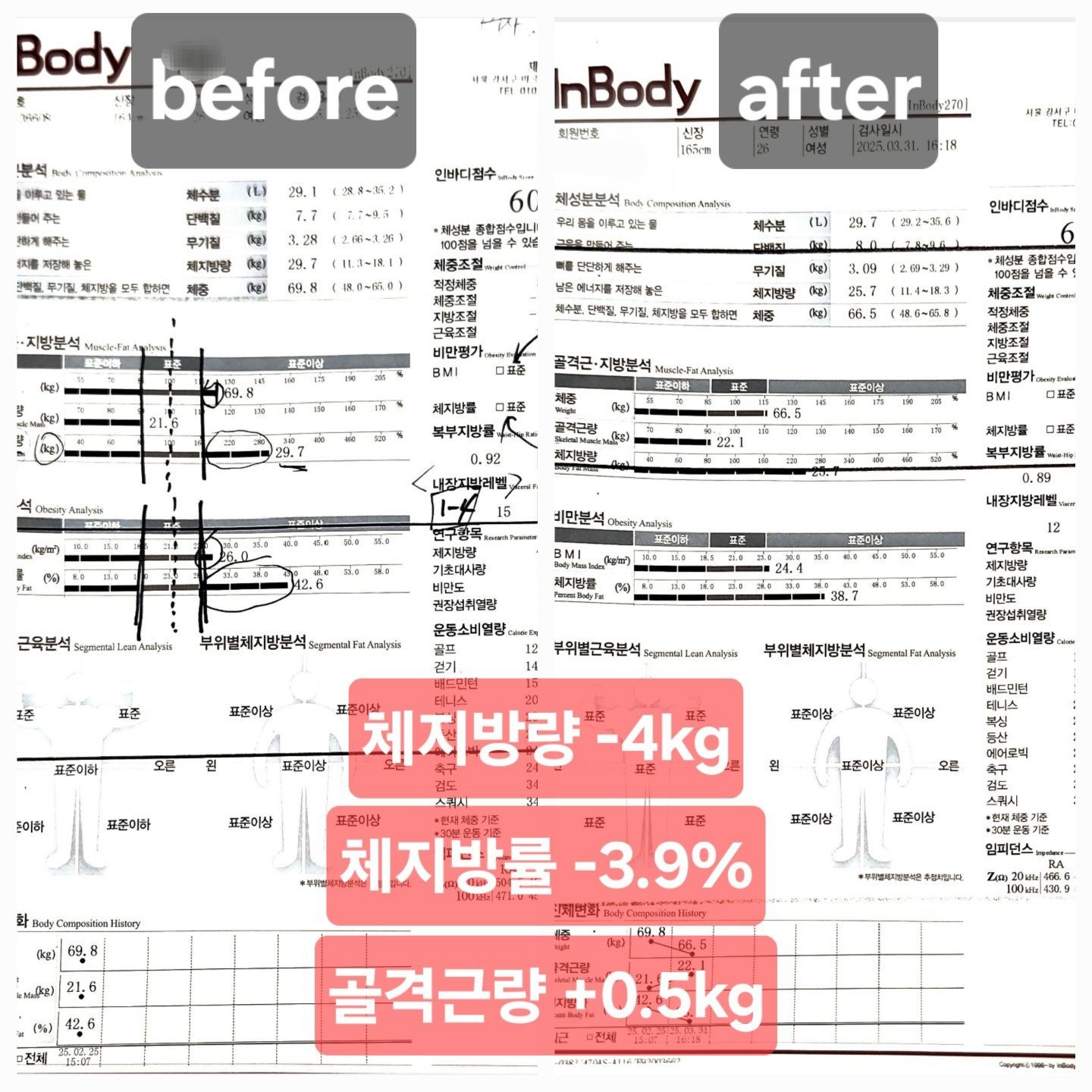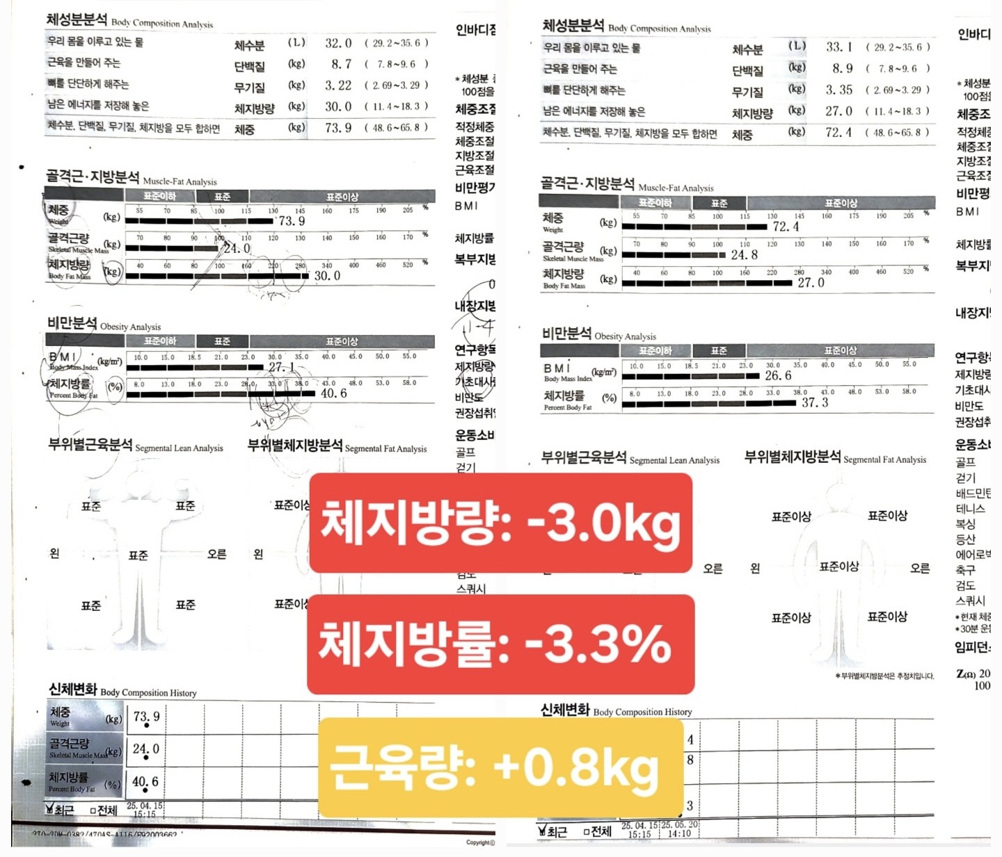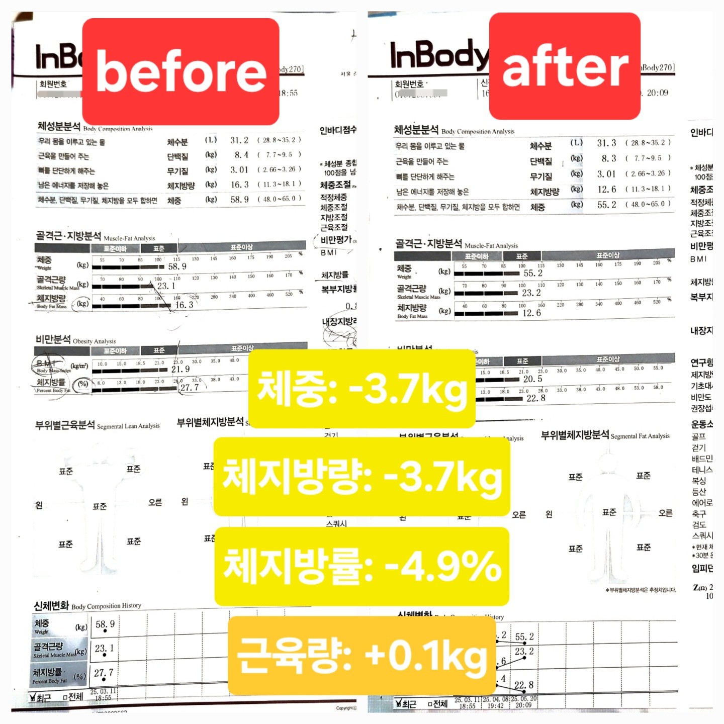 체중 4.2kg, 체지방 3.7kg 감량했습니다!
