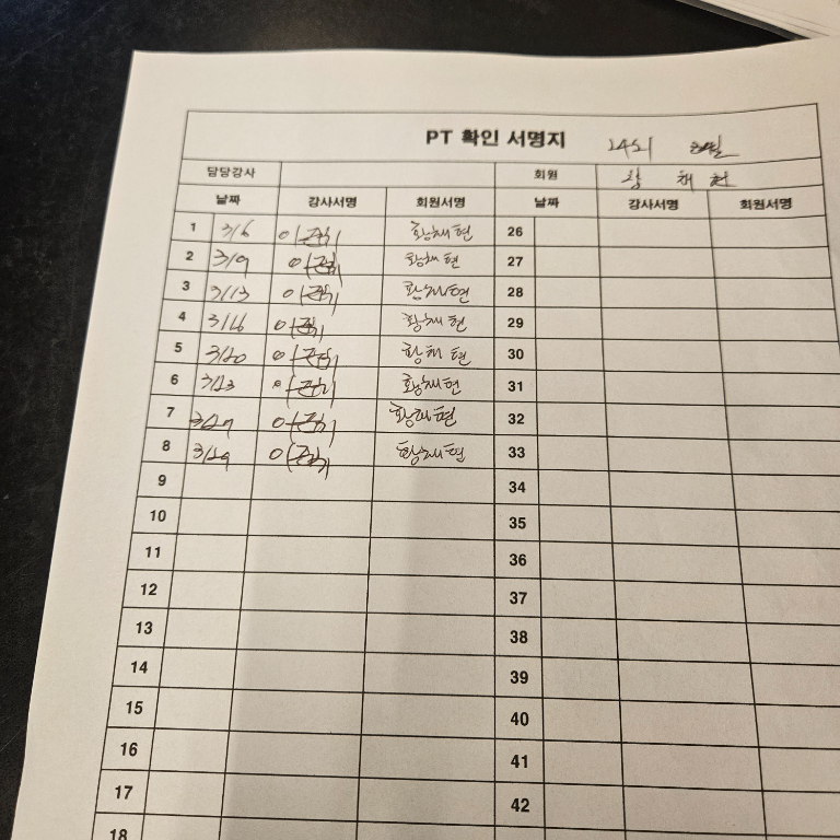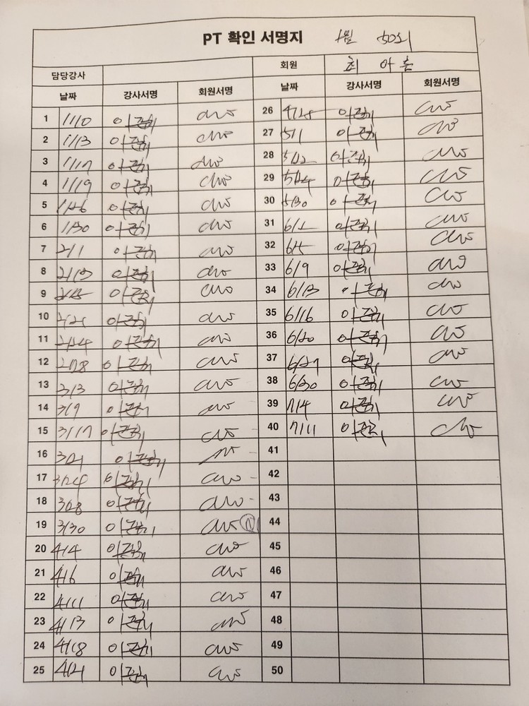 PT가 처음이라 우선 10회만 등록했었는데, 중간에 25회로 연장했어요-!