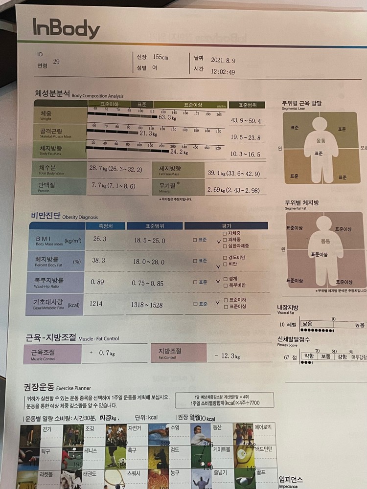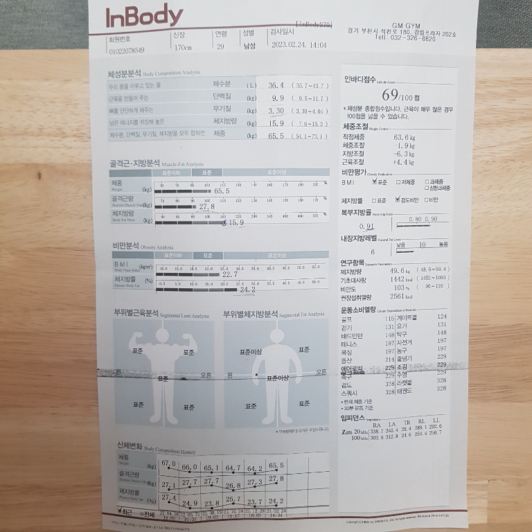 첫 방문 시 - 체중 64.8 / 골격근 28