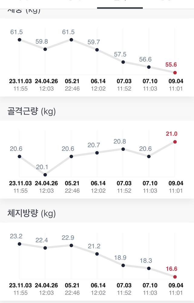 기존에 대사가 무너져 있어서 운동 식단을 적절히 병행해가며 골격근량을 키우며 건강하게 빼고있네요
