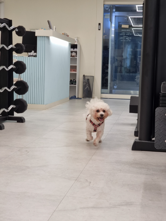 👍💪🔥“운동하다보면 가끔 헬스장에 강아지 🐶가 오는데 귀여워요 💕운동에 힐링이 됩니다…..귀여운거 최고