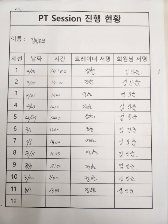 12회씩 세번 끊어서 진행했습니다만, 지금와서 생각해보면 한번에 길게 끊을 걸 하고 생각될 정도로 만족스러운 PT 기간이었습니다.