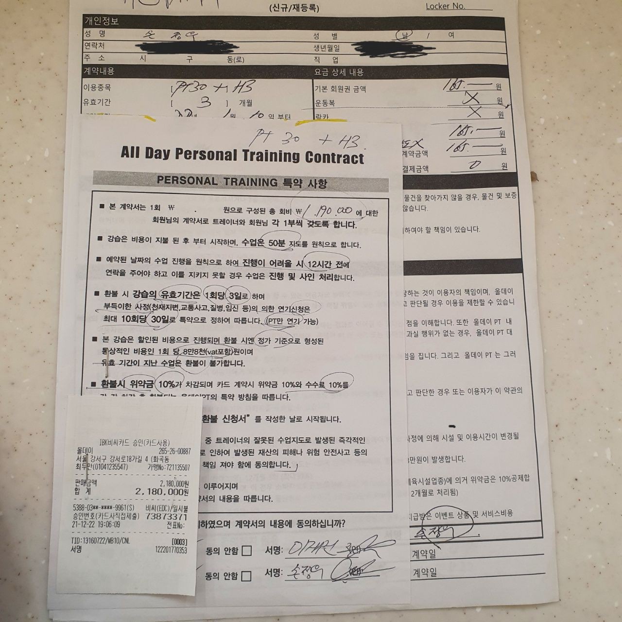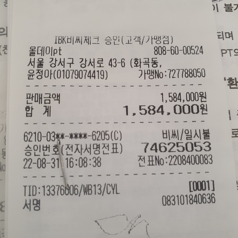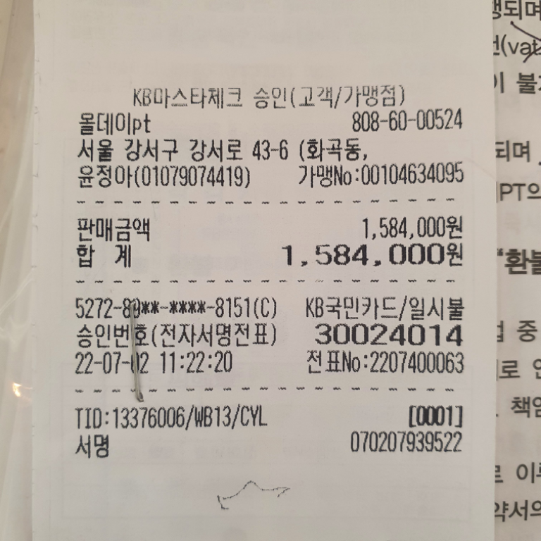 61개PT 3개월로 결재된 금액이며 현재 3주째인데 확실히 체력이 늘어난게 느껴지네요