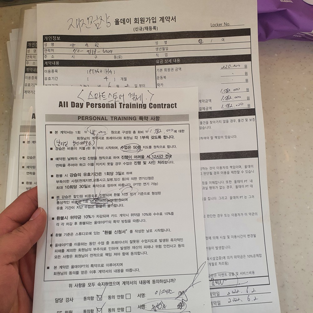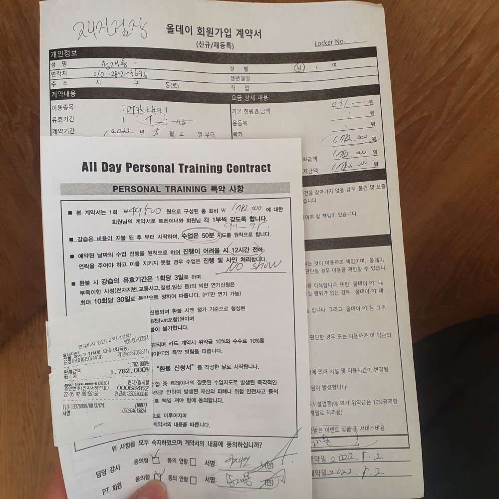 pt 30회 비용이 적은 돈도 아니고 적어도 3개월을 같이 운동할 트레이너님을 골라야 했기 때문에 체험을 꼭 받으라는 인터넷 후기를 보고 체험을 신청했습니다.
