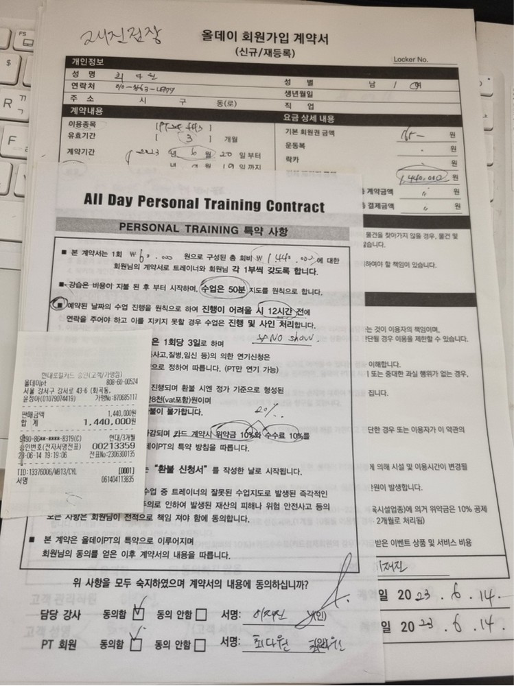 체험을 받기 전에는 요즘 영상도 잘 나오는데 꼭 pt를 받아야 할까라는 의심이 있었는데 확실히 힘을 어떻게 줘야하는지 자세가 어디가 잘못됬는지 운동을 같이하면서 디테일한 부분까지 바로바로 알려 주는 이재진쌤의 pt 체험을 받고 그 자리에서 바로 30회 3개월 할부로 결제했습니다.