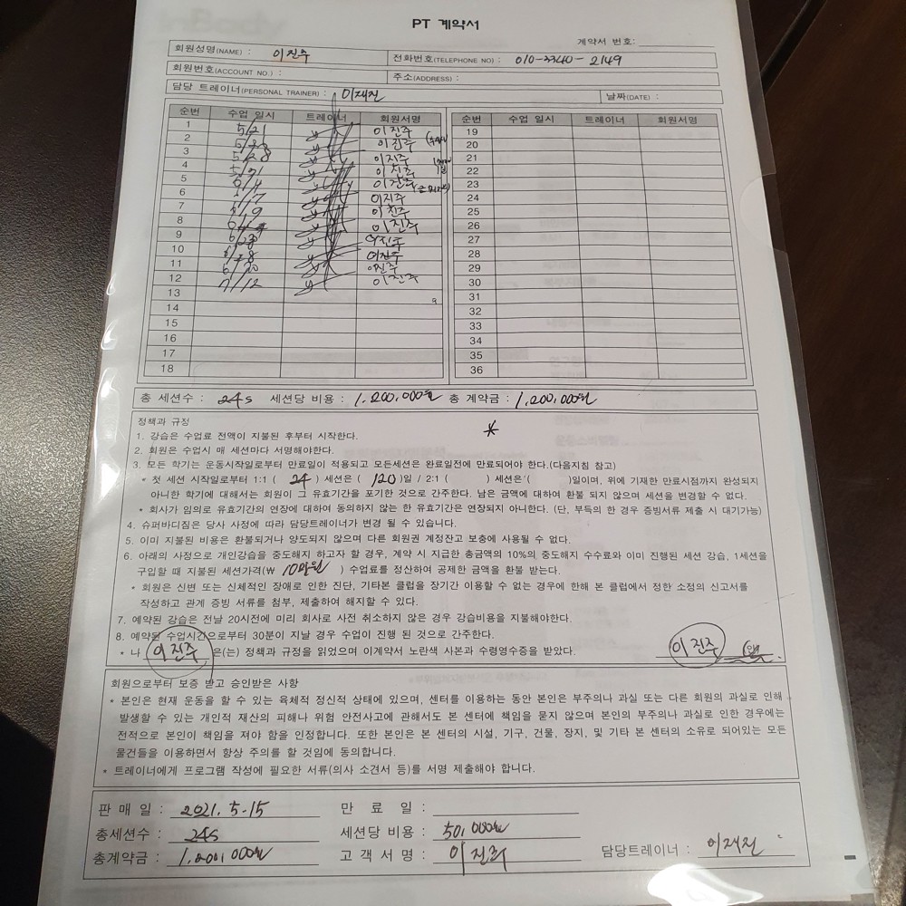 JJ 트레이너님한테 피티 24회 받았는데