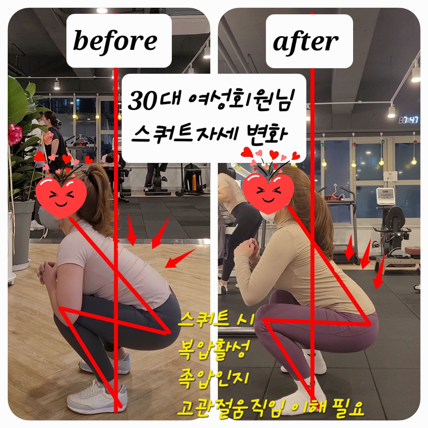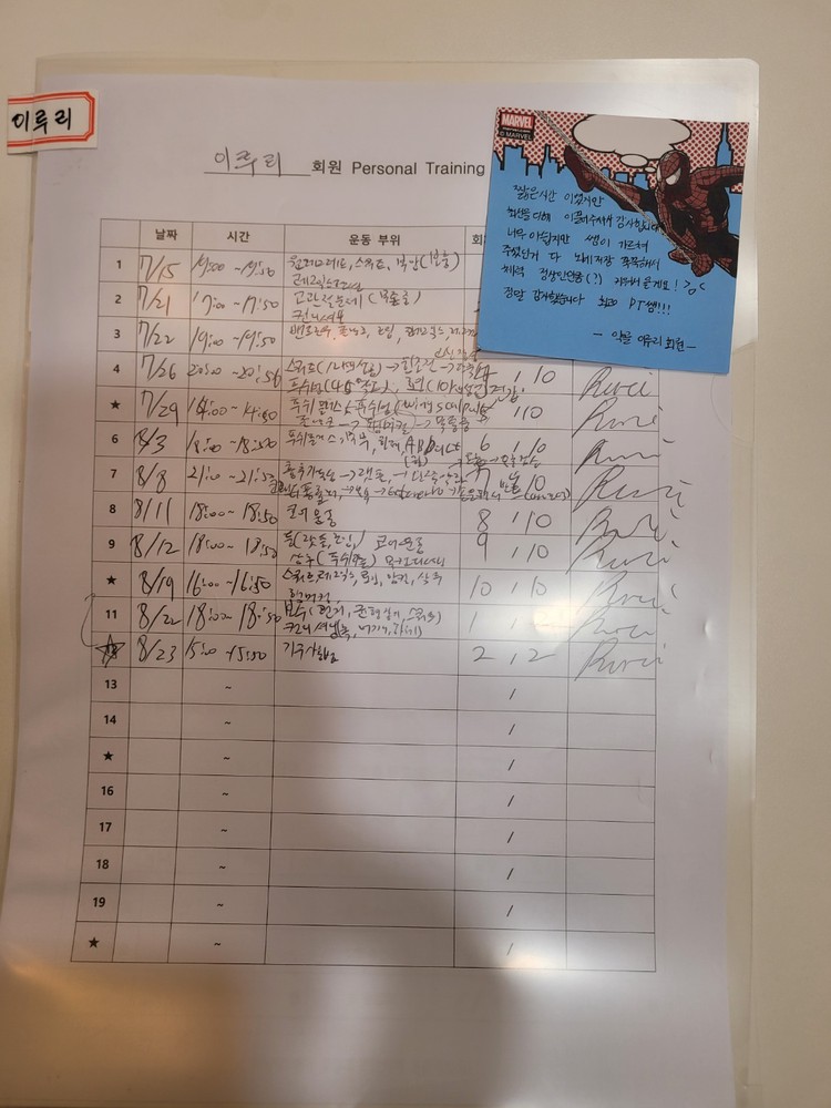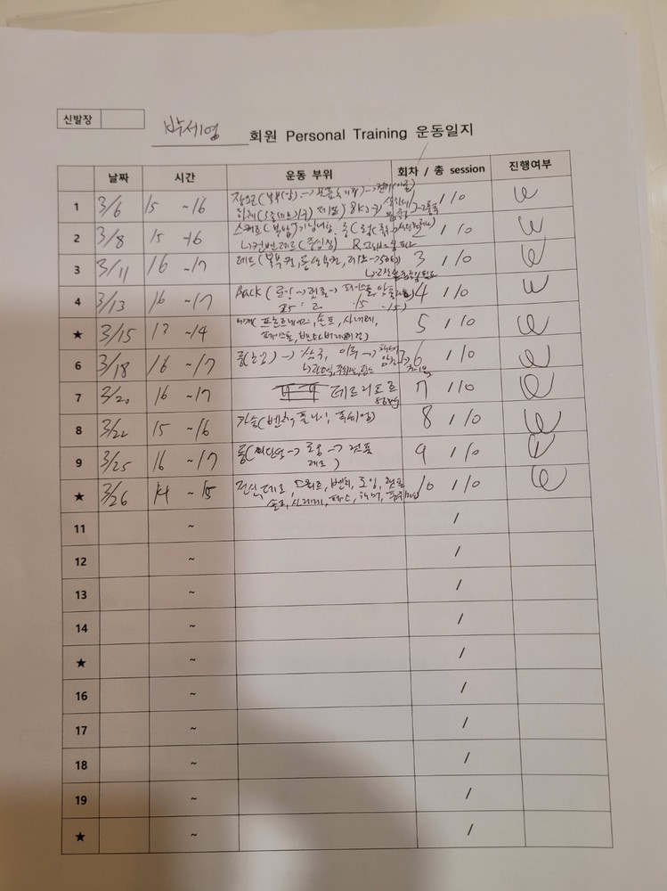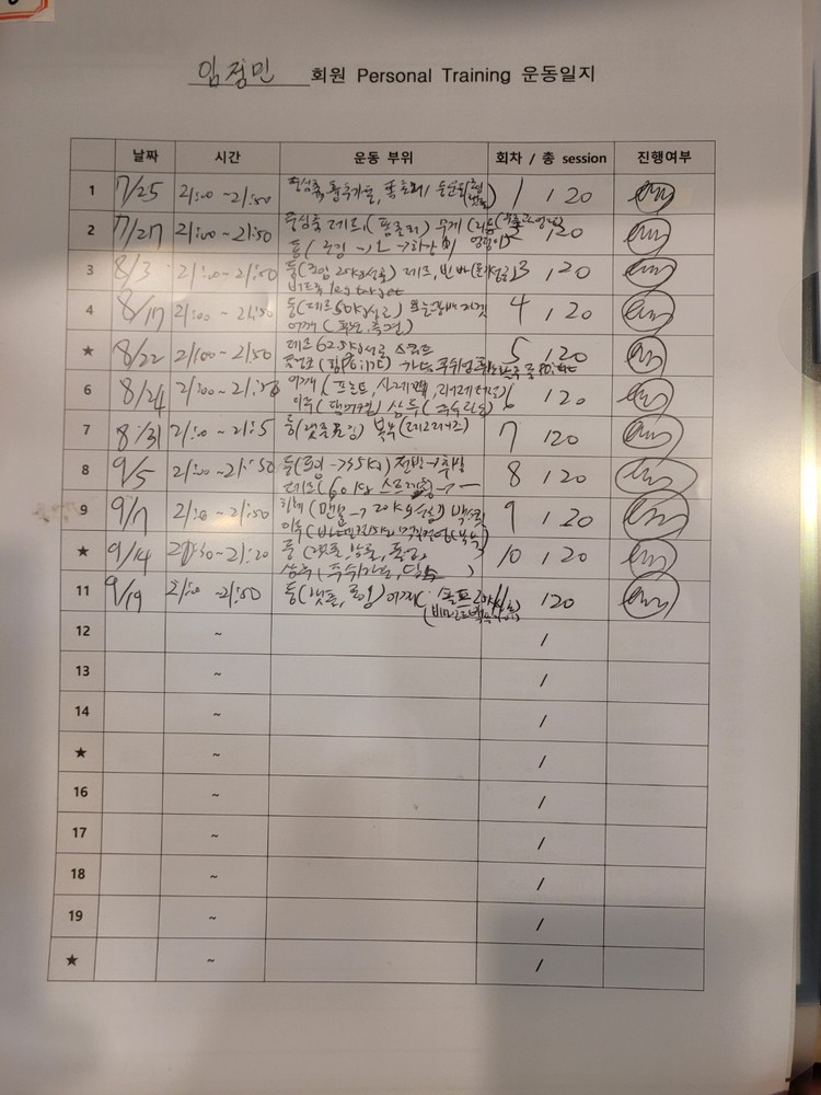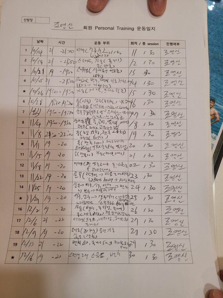 또 회원님의 신체특성상 맞는 운동을 통해 개선되어질 수 있게 도와드리고 점점 발전하셔서 저도 좋습니다!ㅎㅎ 비록 이사로 운동을 연장되어지지않지만 기본적인 부분을 심어드린거에 보람찹니다!ㅎㅎ 운동 열심히 해주십쇼!!