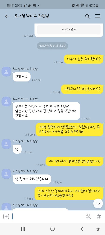 개개인에 맞는 운동을 시켜주셔서 너무 좋아요👍🏻