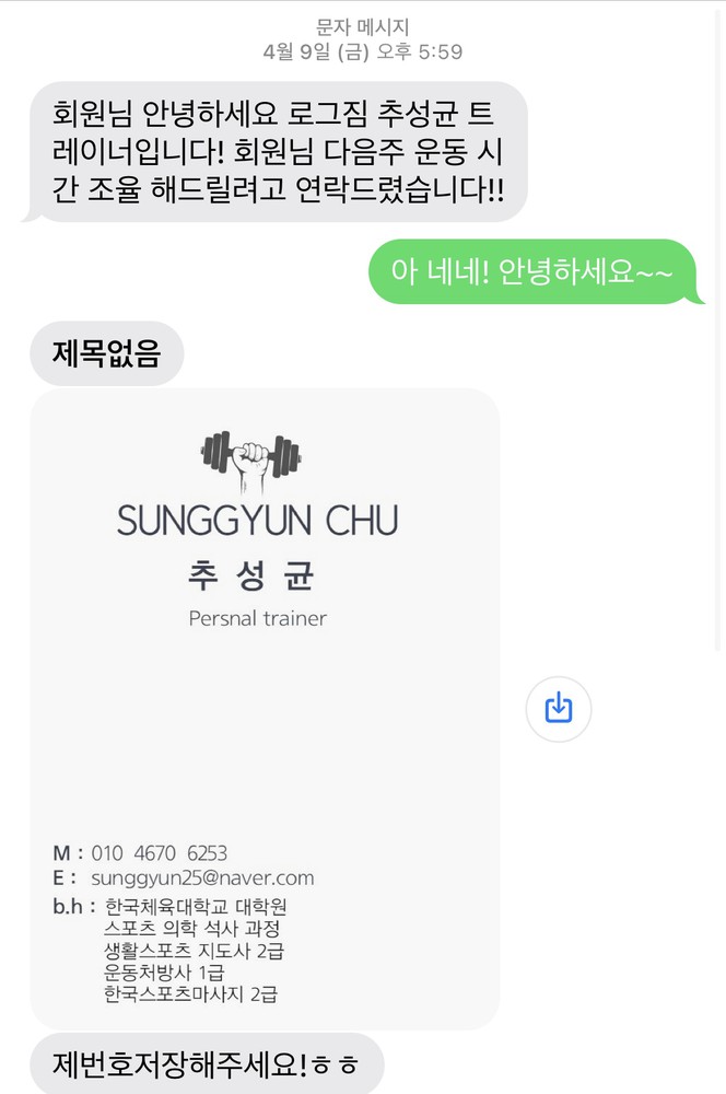 설명이 체계적이고 전공하신분 다운 전문성이 있습니다. 피티 시작하기로 마음먹고 여러군데 다녀봐야겠다고 생각했는데 오늘 체험하고 그냥 바로 등록했습니다.ㅎㅎ추천합니다!