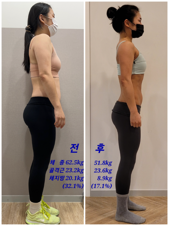 2개월 정도밖에 못 하고 가서 시간에 비해 결과가 넘 좋게 나와서 만족스러워요! 피티를 다시 한다면 또 오겠습니다