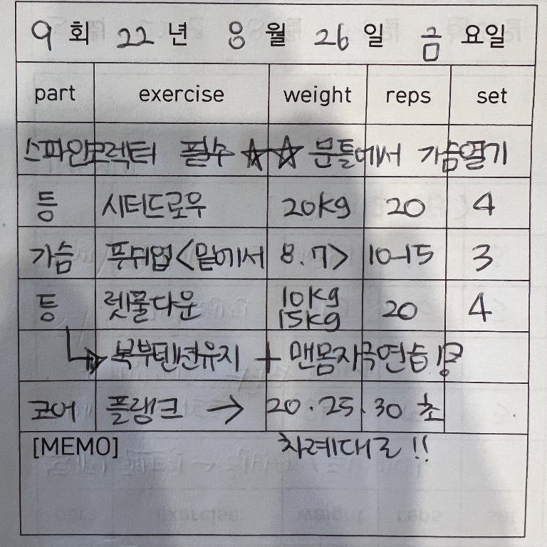 회원님 처음 피티 제게 맡겨주셔서 감사해요! 근육움직임과 자세!!제일중요한거라서 잘 설명드렸었습니다!
