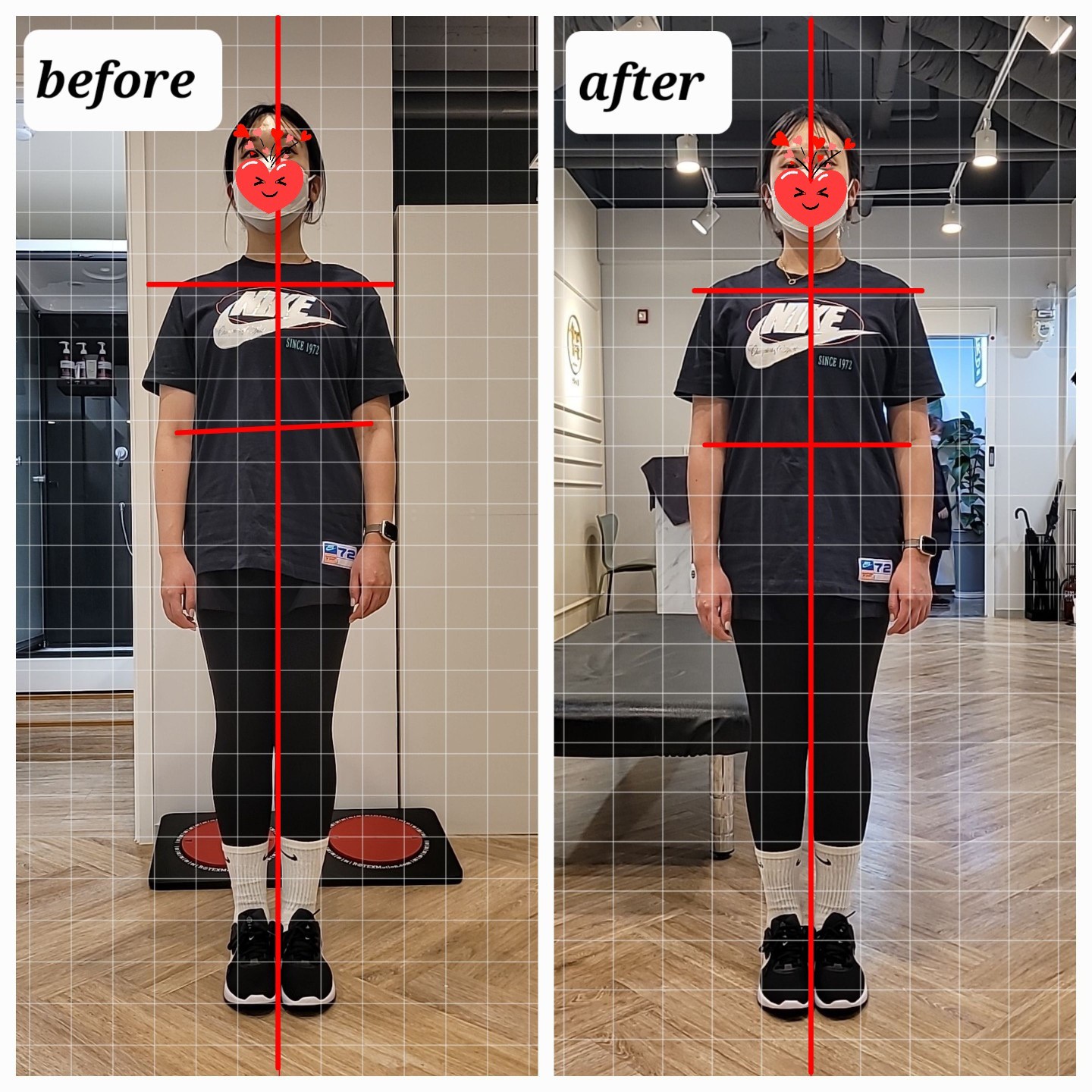 자세 교정을 위해 운동했었는데 운동을 하면서 골반, 허리 틀어짐이 점차 좋아지고 있는게 눈에도 보입니다! 일자목도 있어서 선생님께 말씀드렸더니 교정 운동도 바로 진행해주셨는데 바로 편두통까지 사라져서 넘 신기했어요🥹🥹