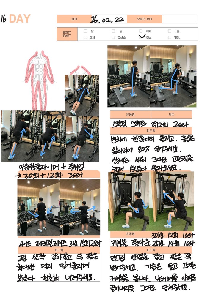 혼자서 운동할 때에도 써먹을 수 있도록 자세에 문제가 있는 부분들을 꼼꼼히 알려주셔서 앞으로도 복습해보며 운동에 흥미를 가져볼 수 있을 것 같아요.