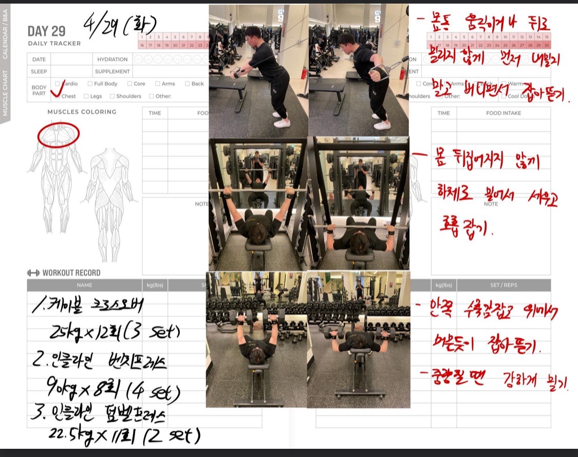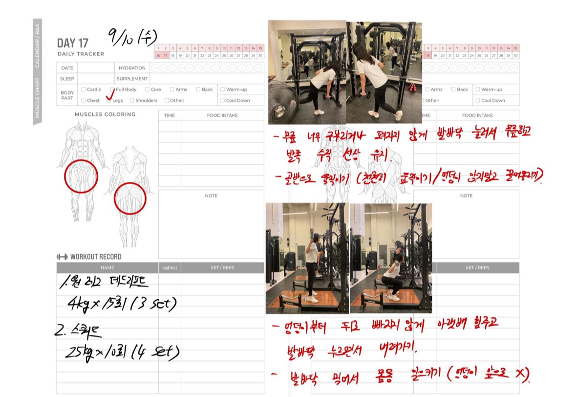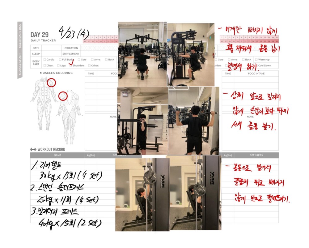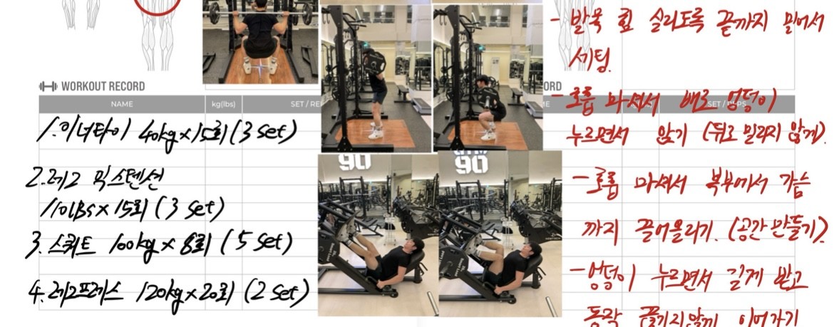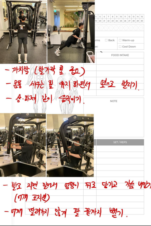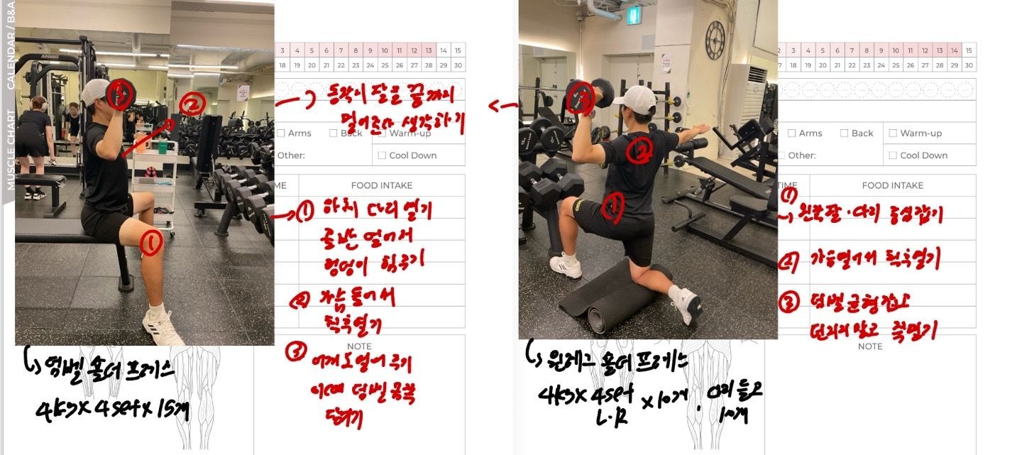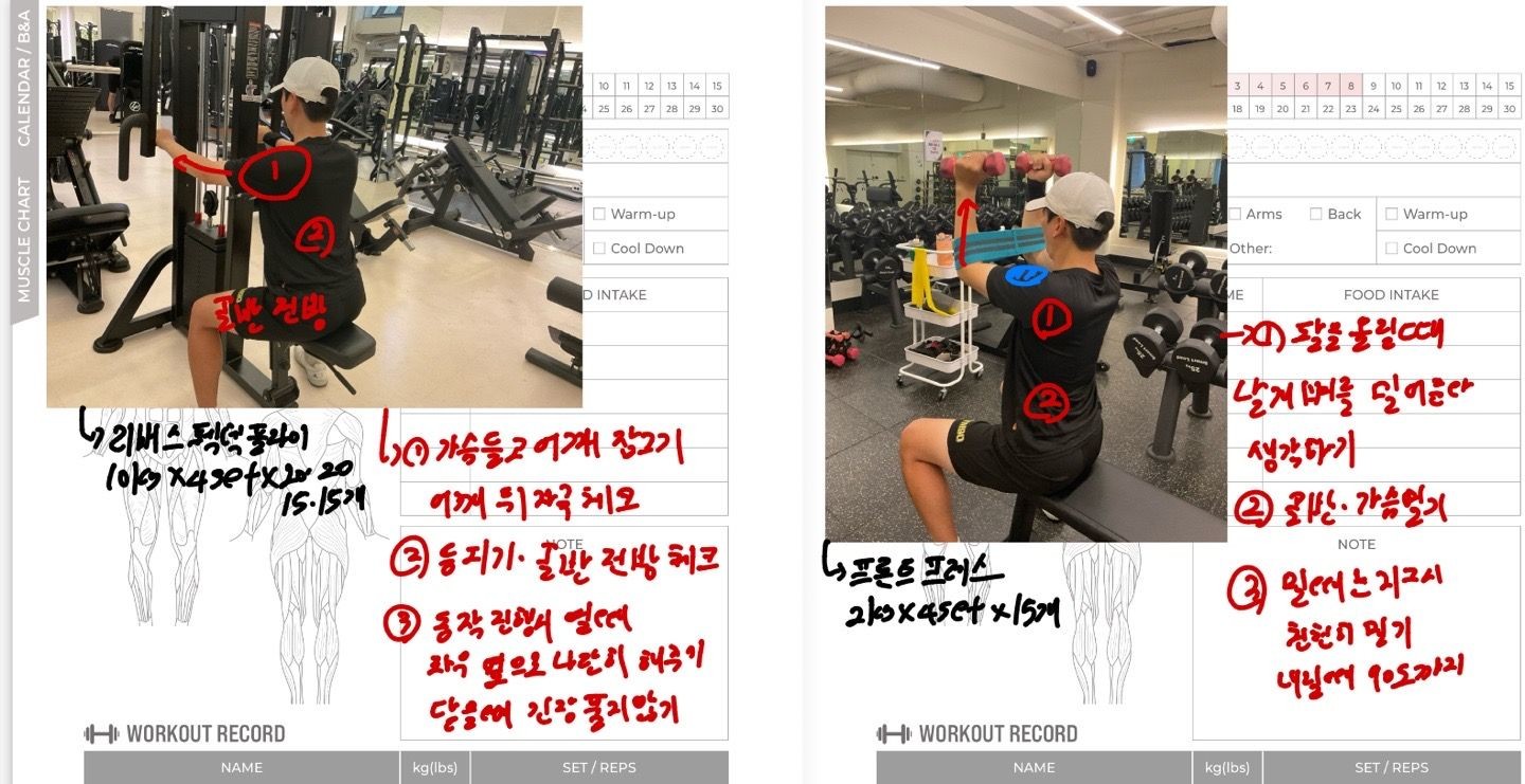 운동일지 작성 잘해주셔서 혼자 운동하는데