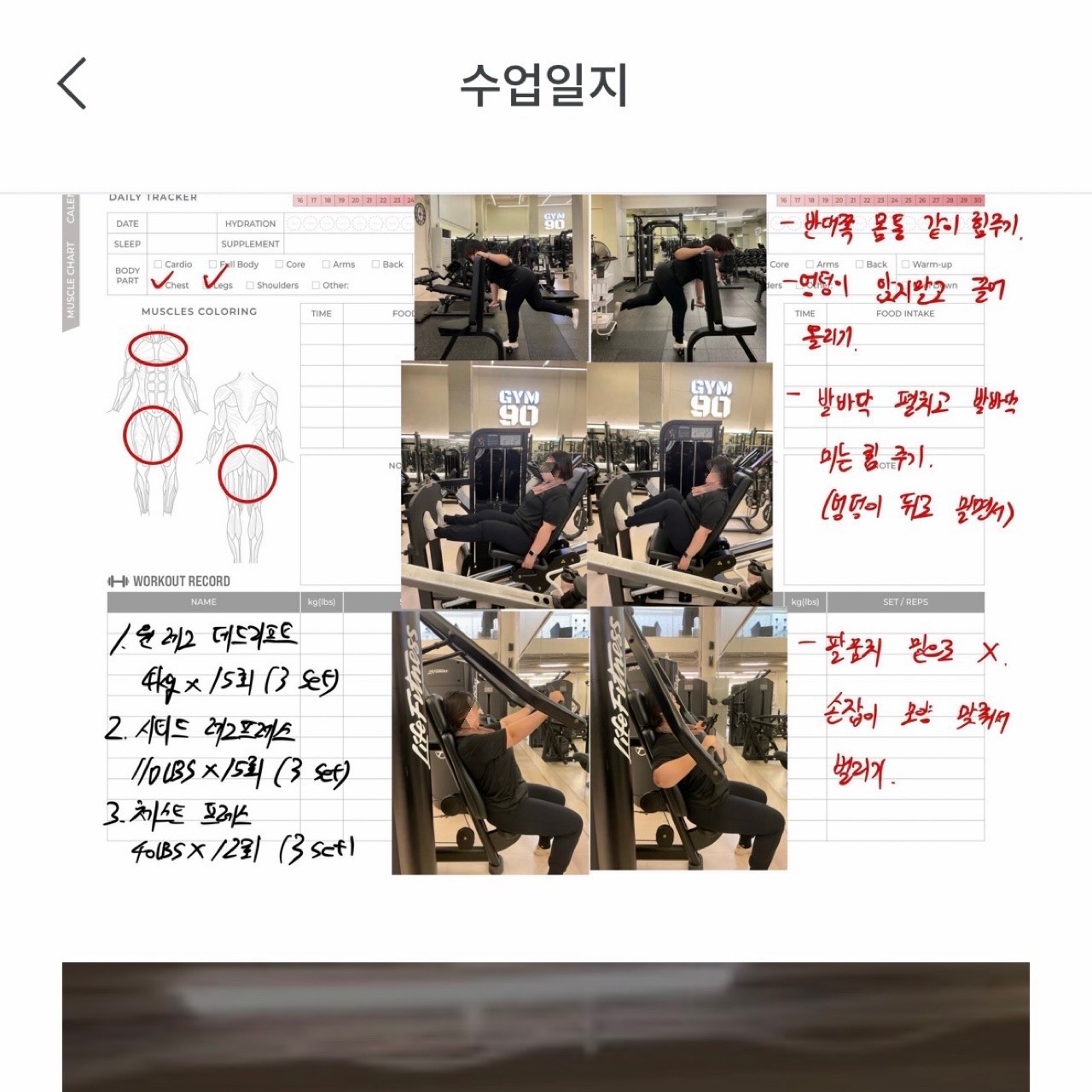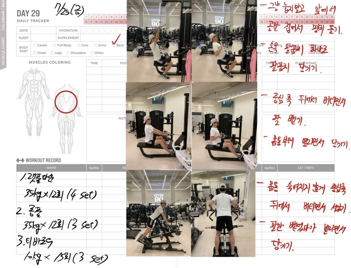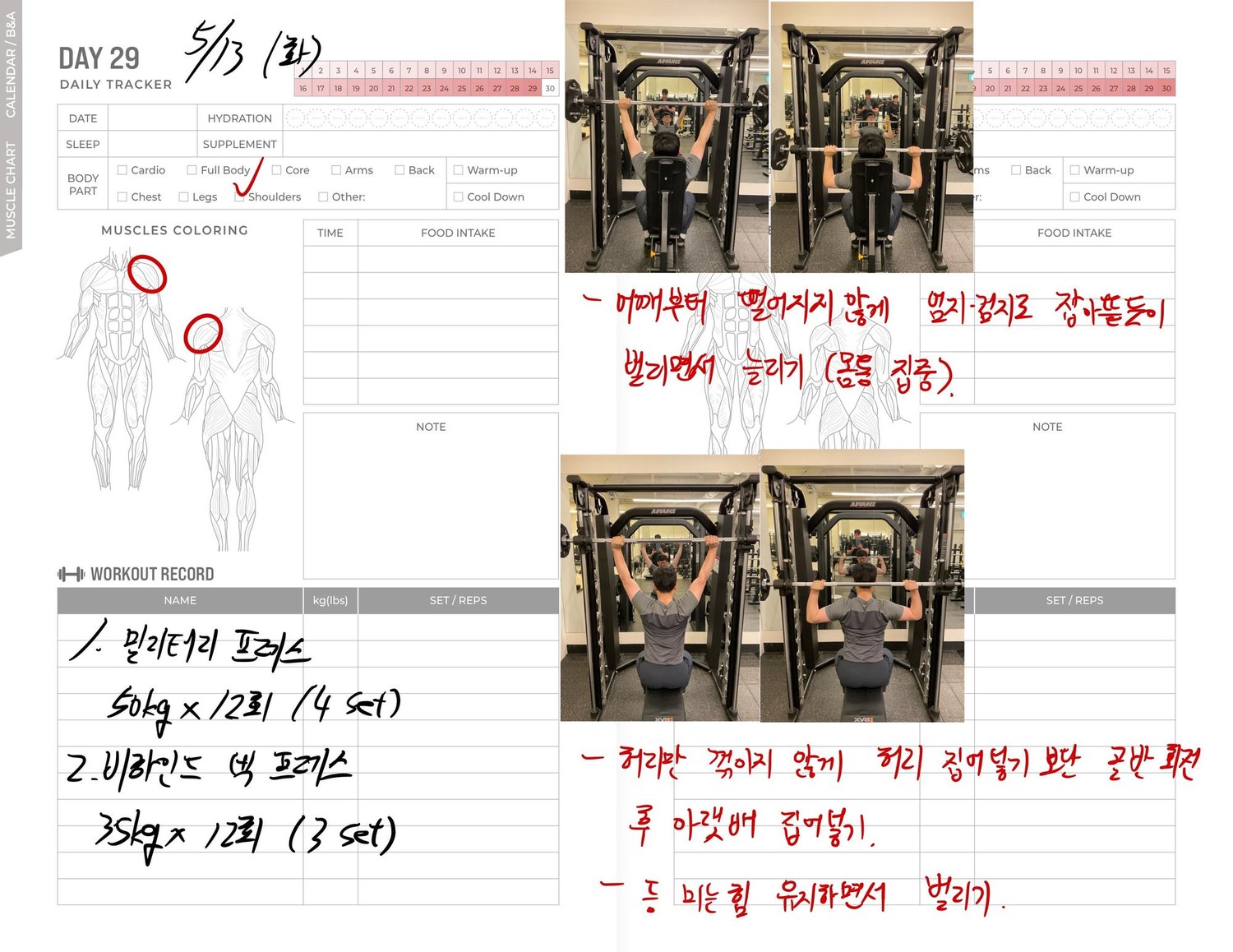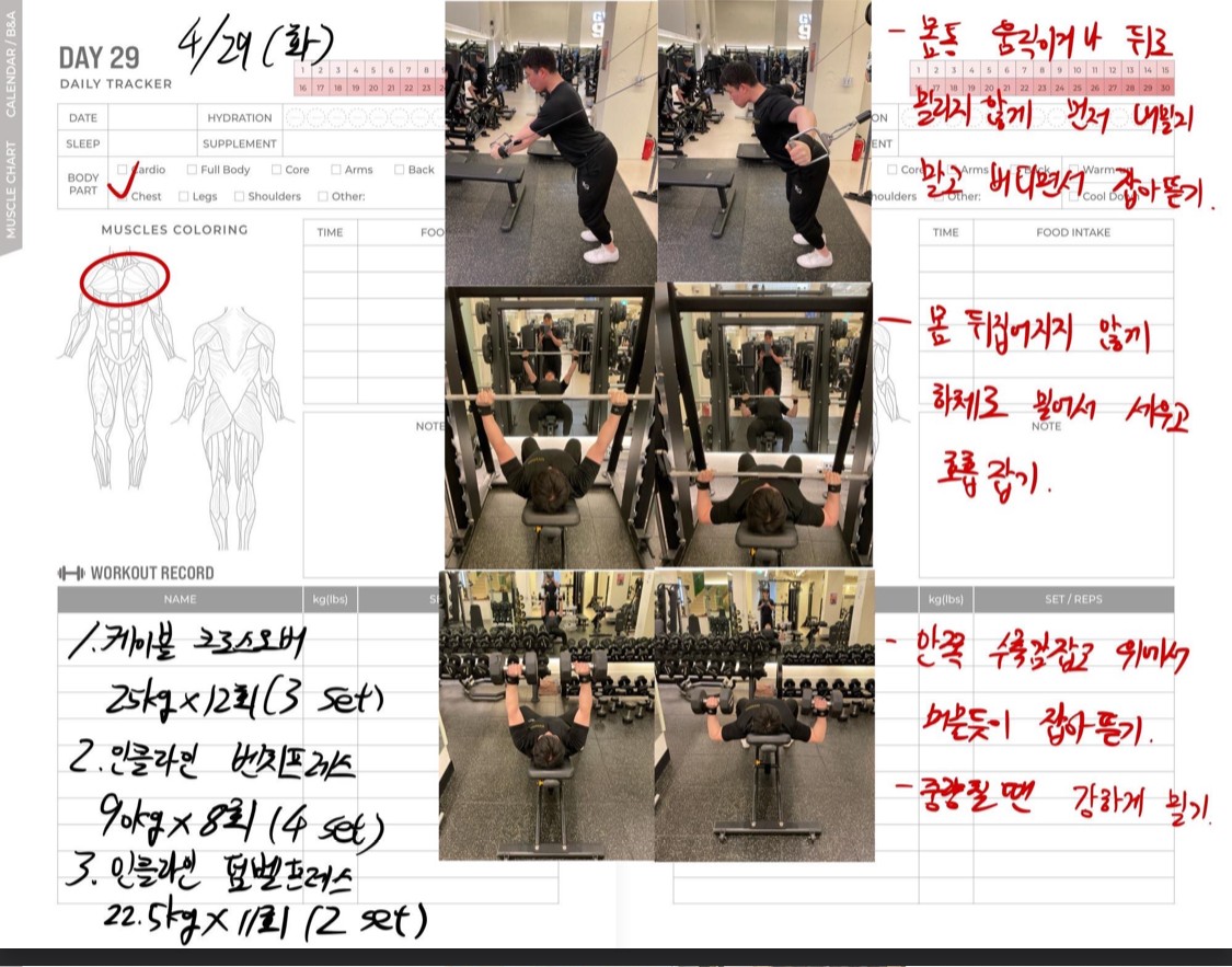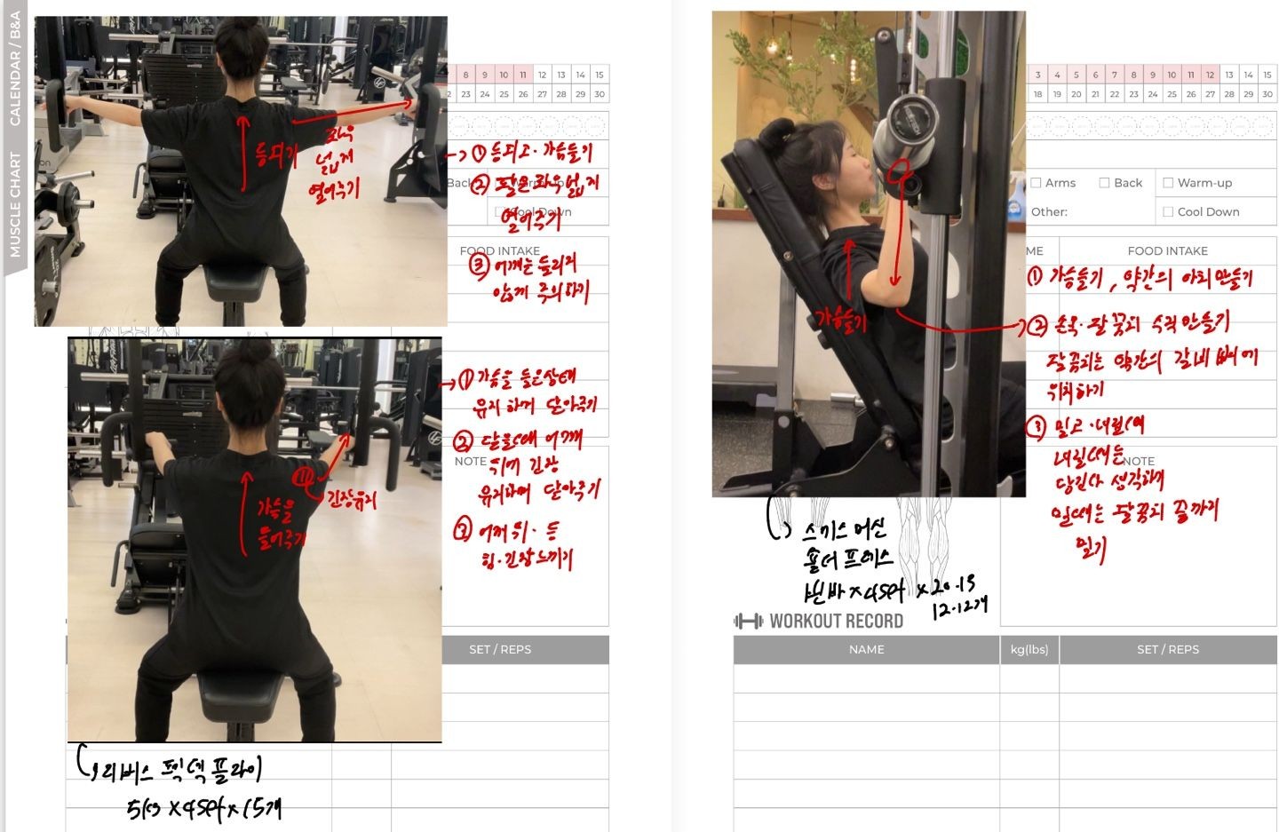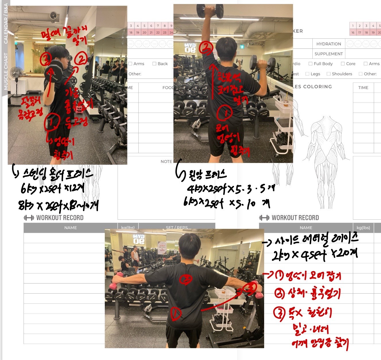 운동일지 작성 잘해주셔서 혼자 운동하는데