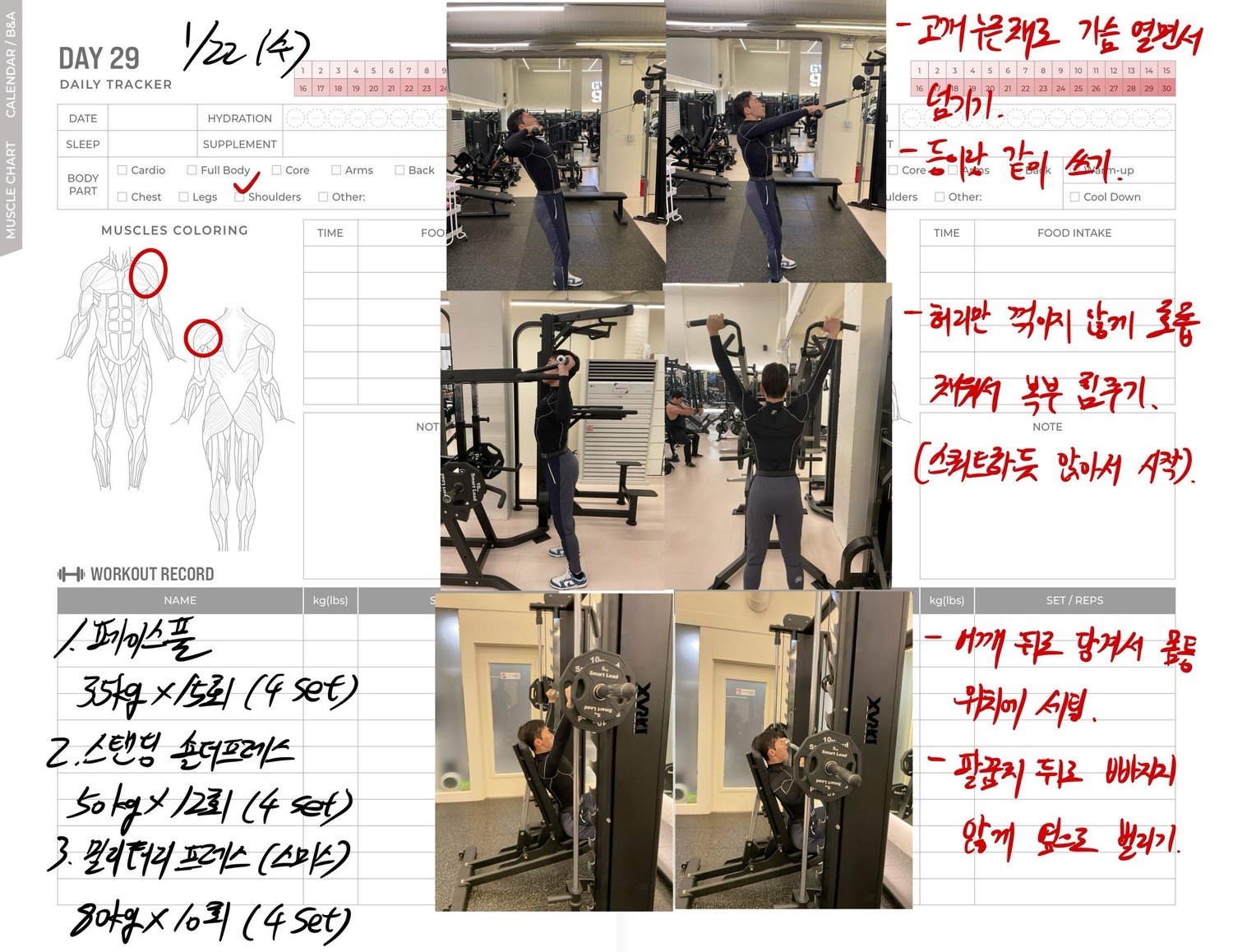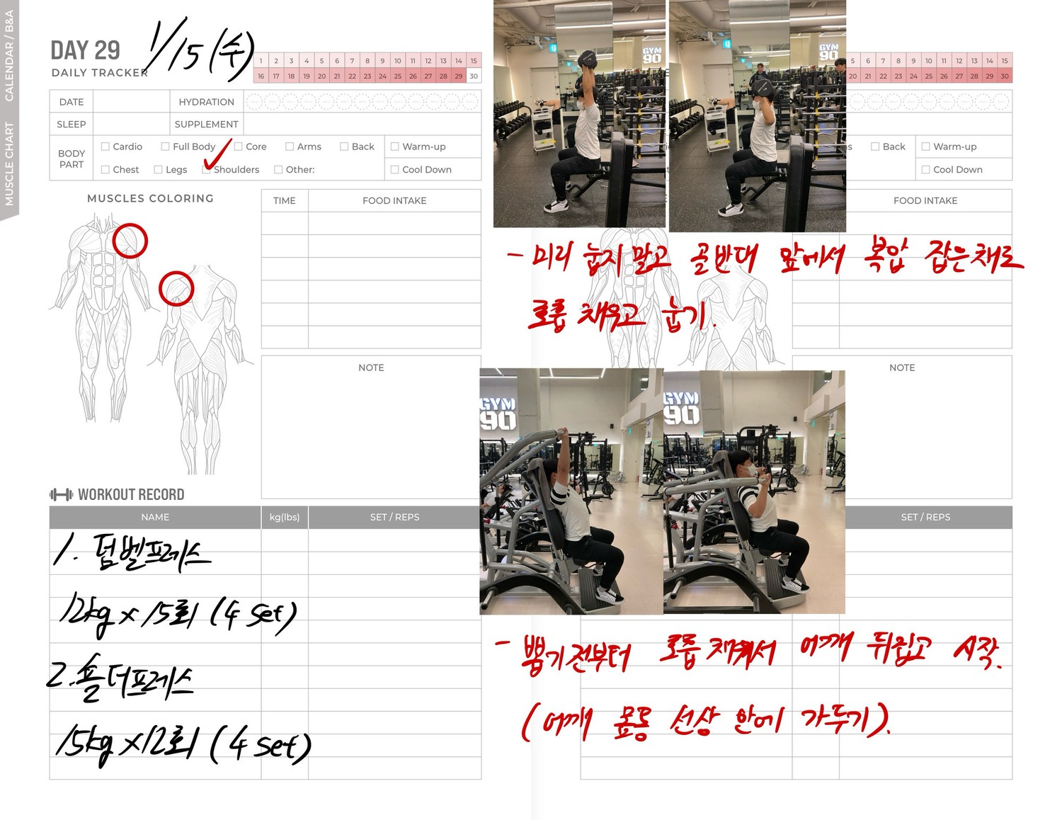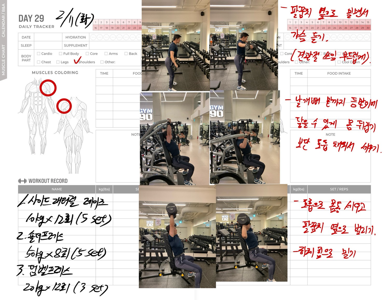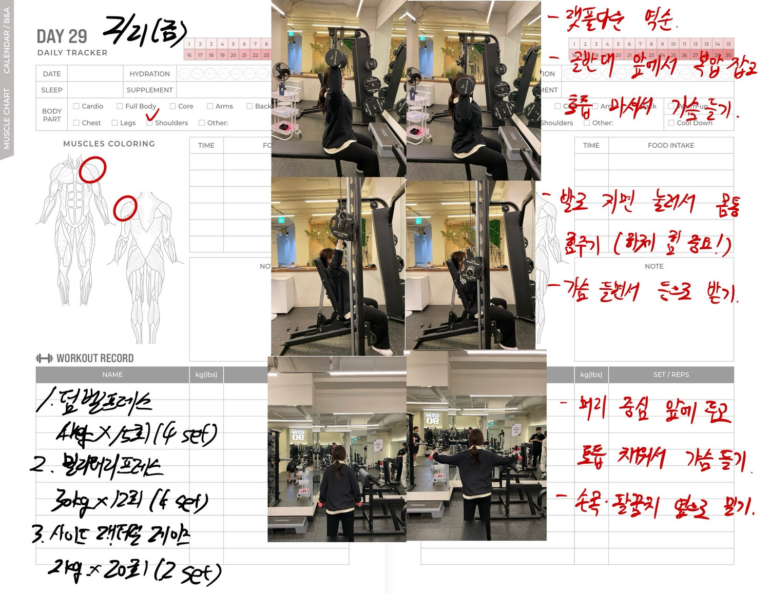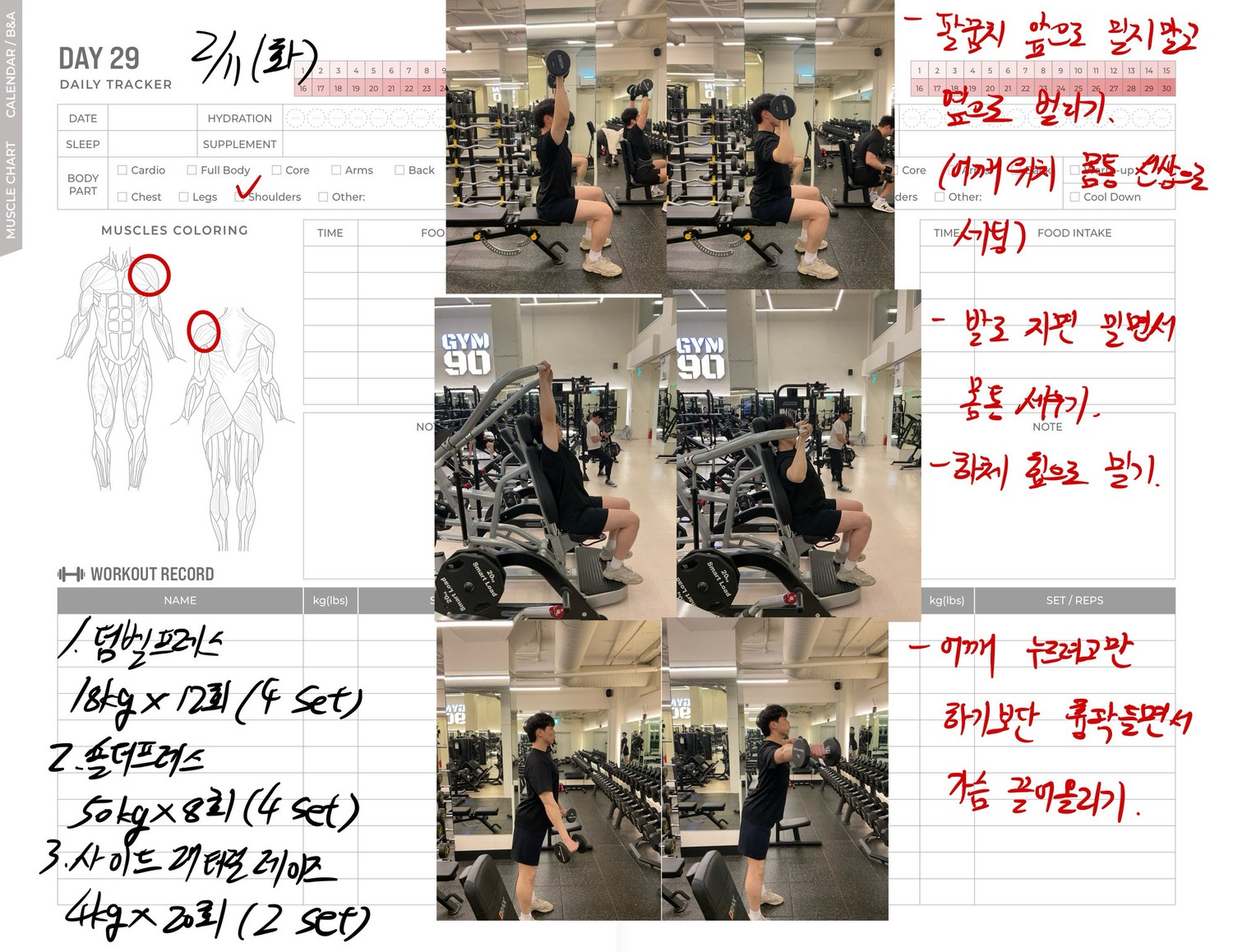 운동일지 작성 잘해주셔서 혼자 운동하는데