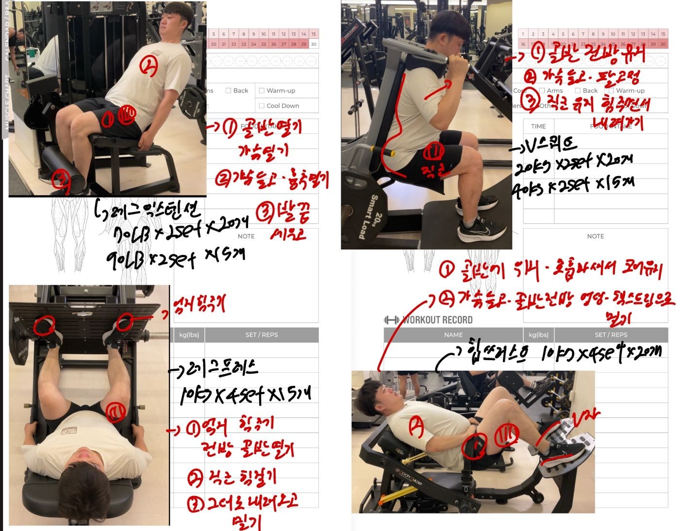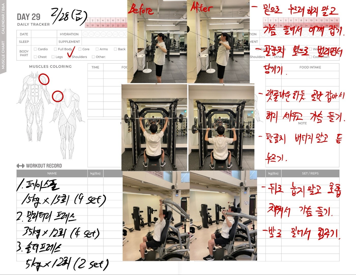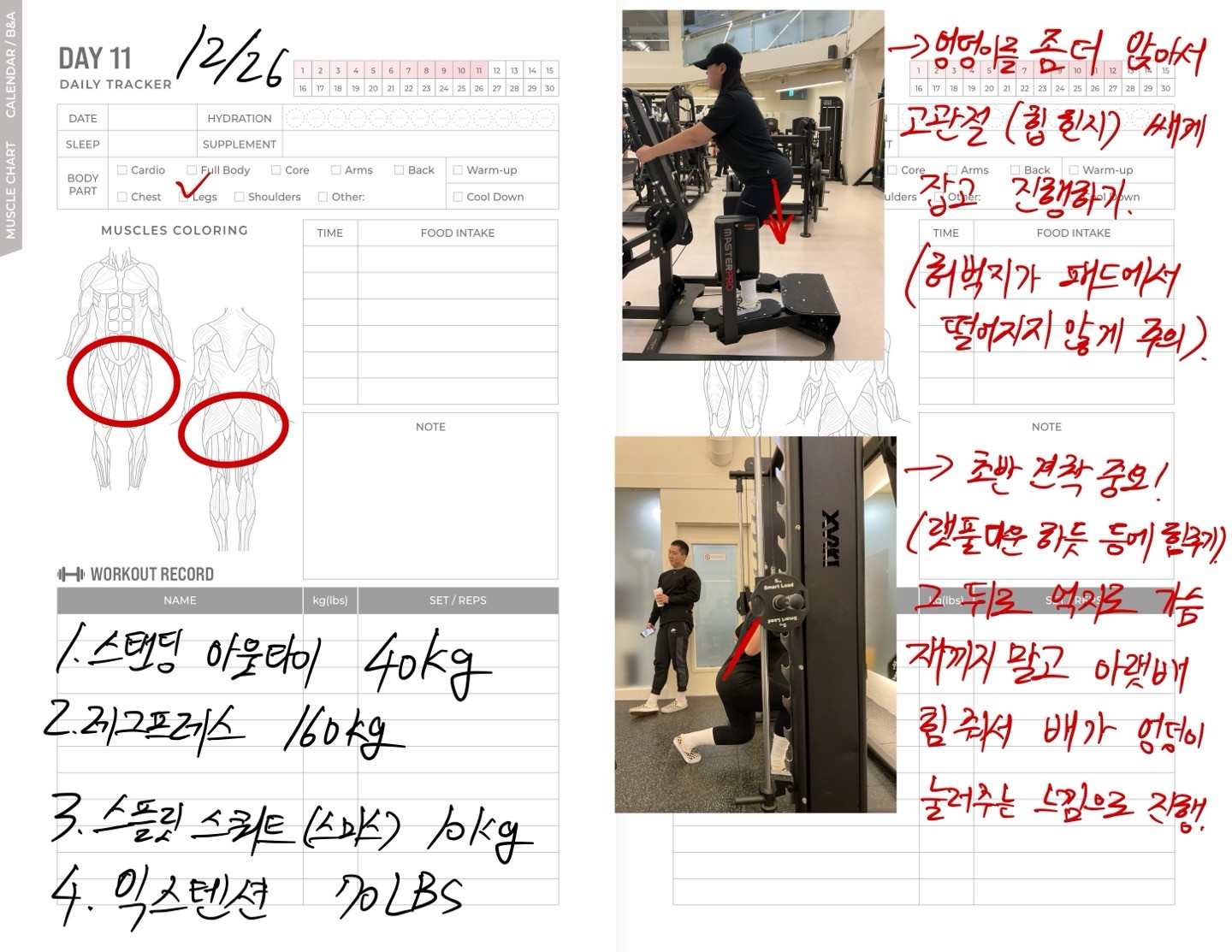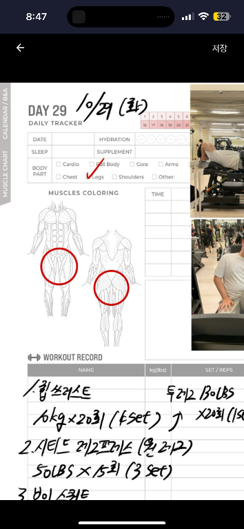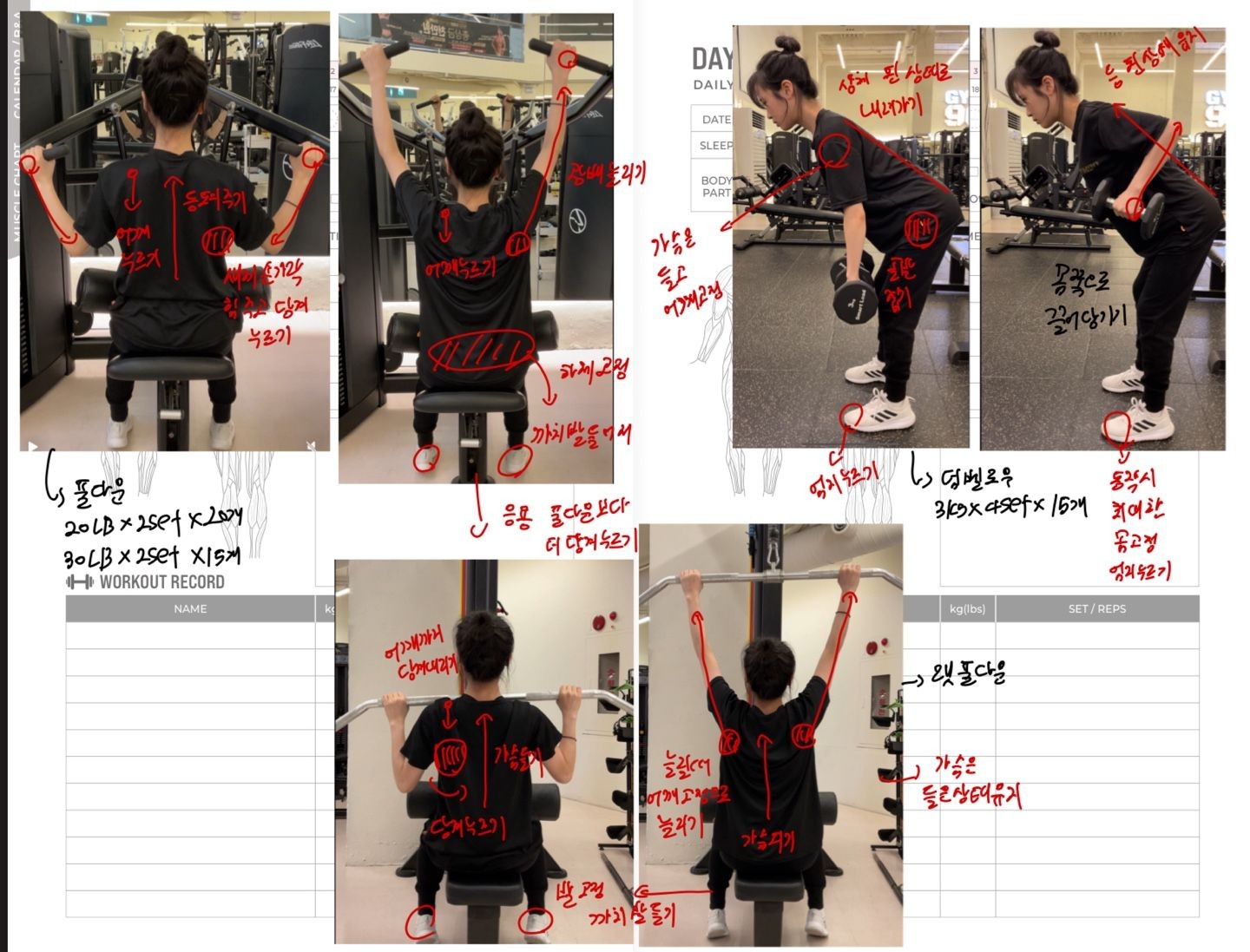 운동일지 작성 잘해주셔서 혼자 운동하는데