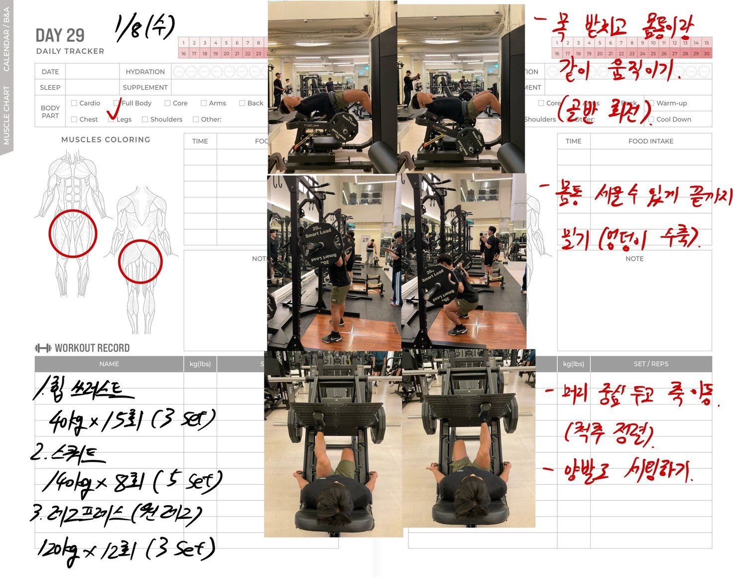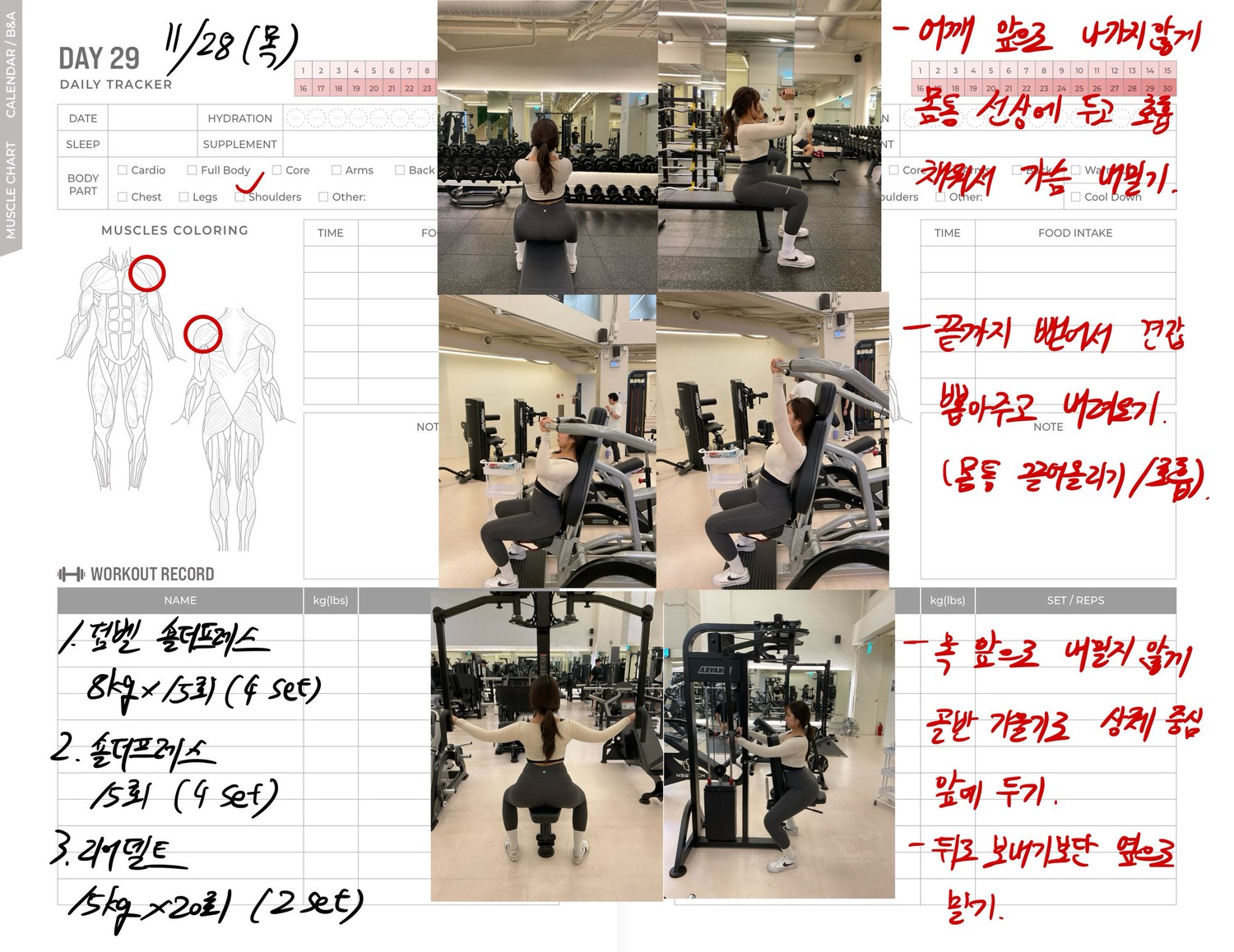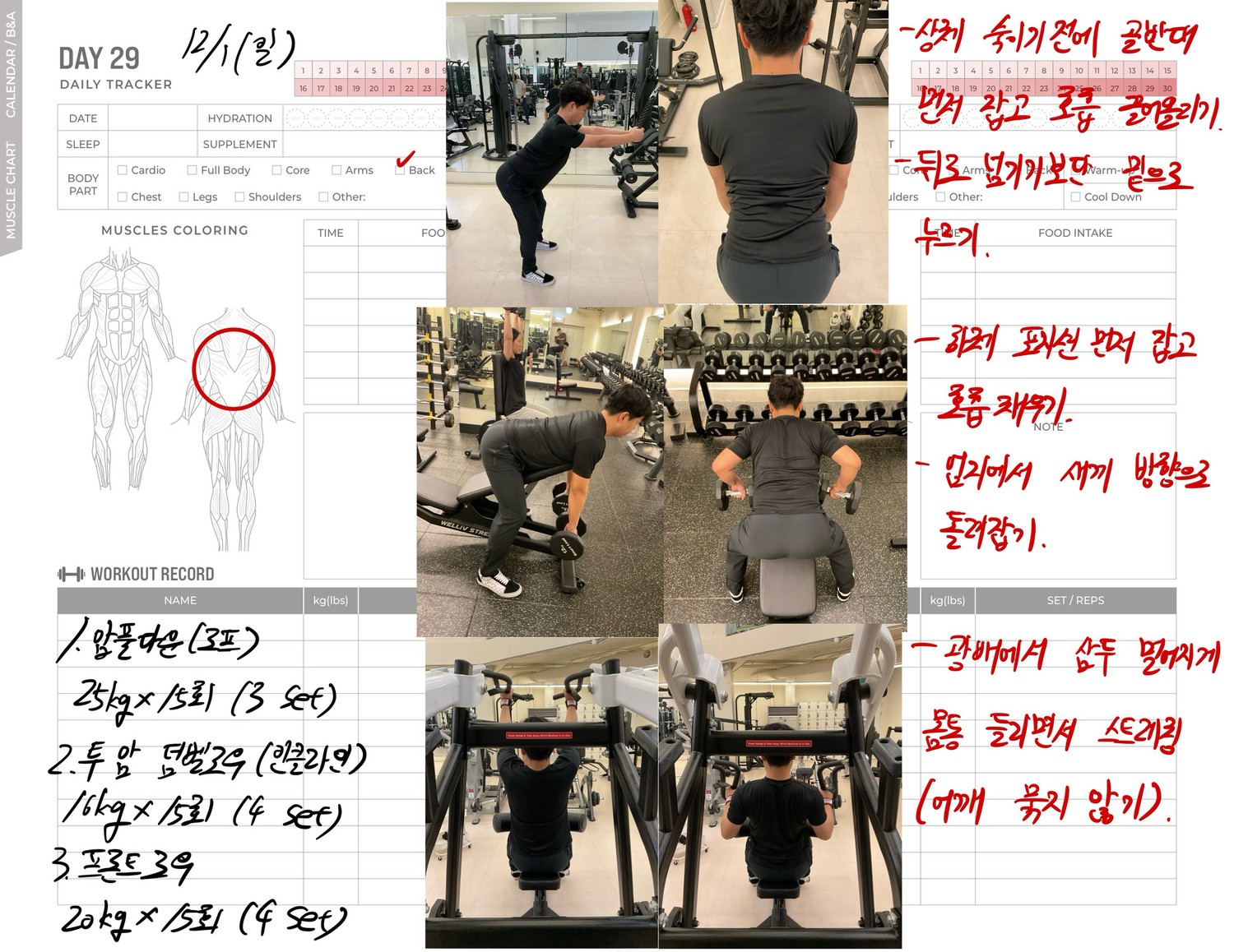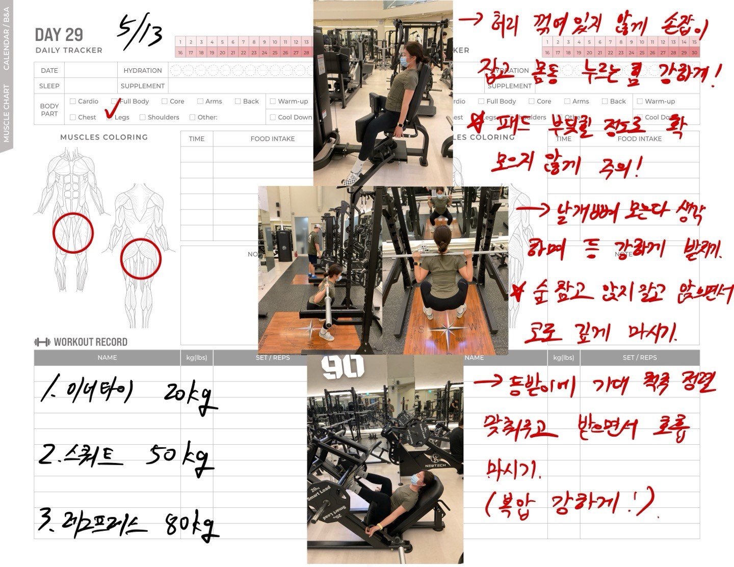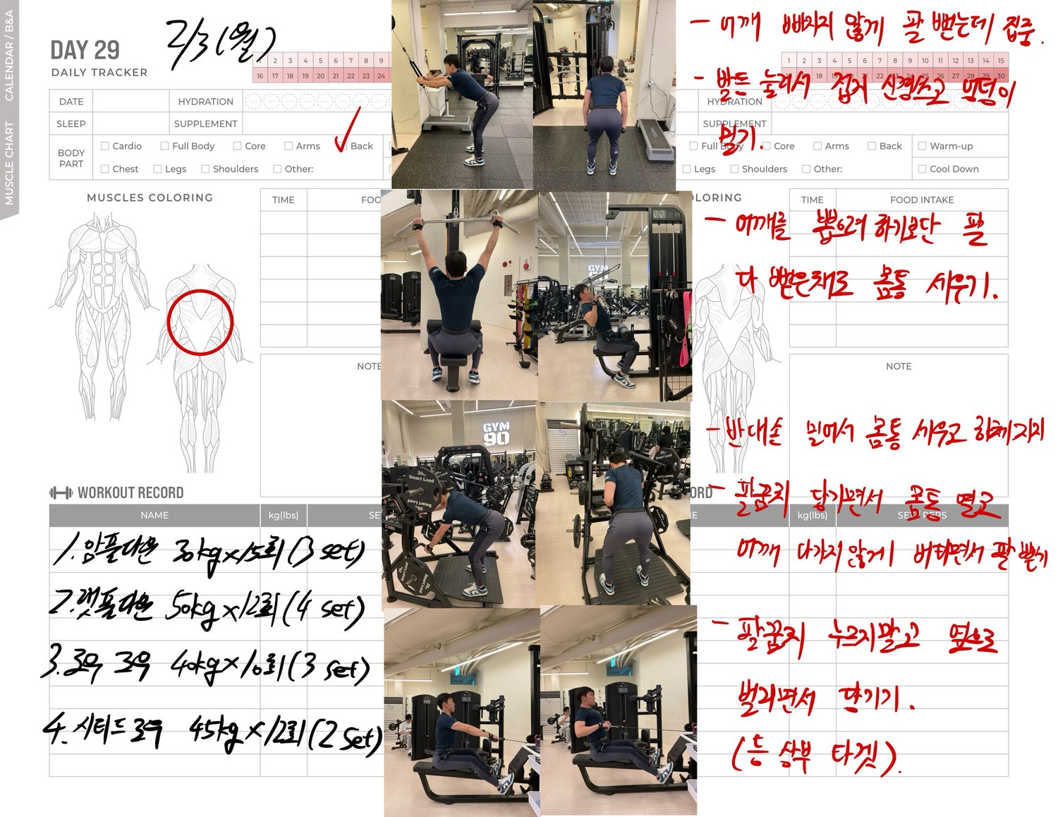 운동일지 작성 잘해주셔서 혼자 운동하는데