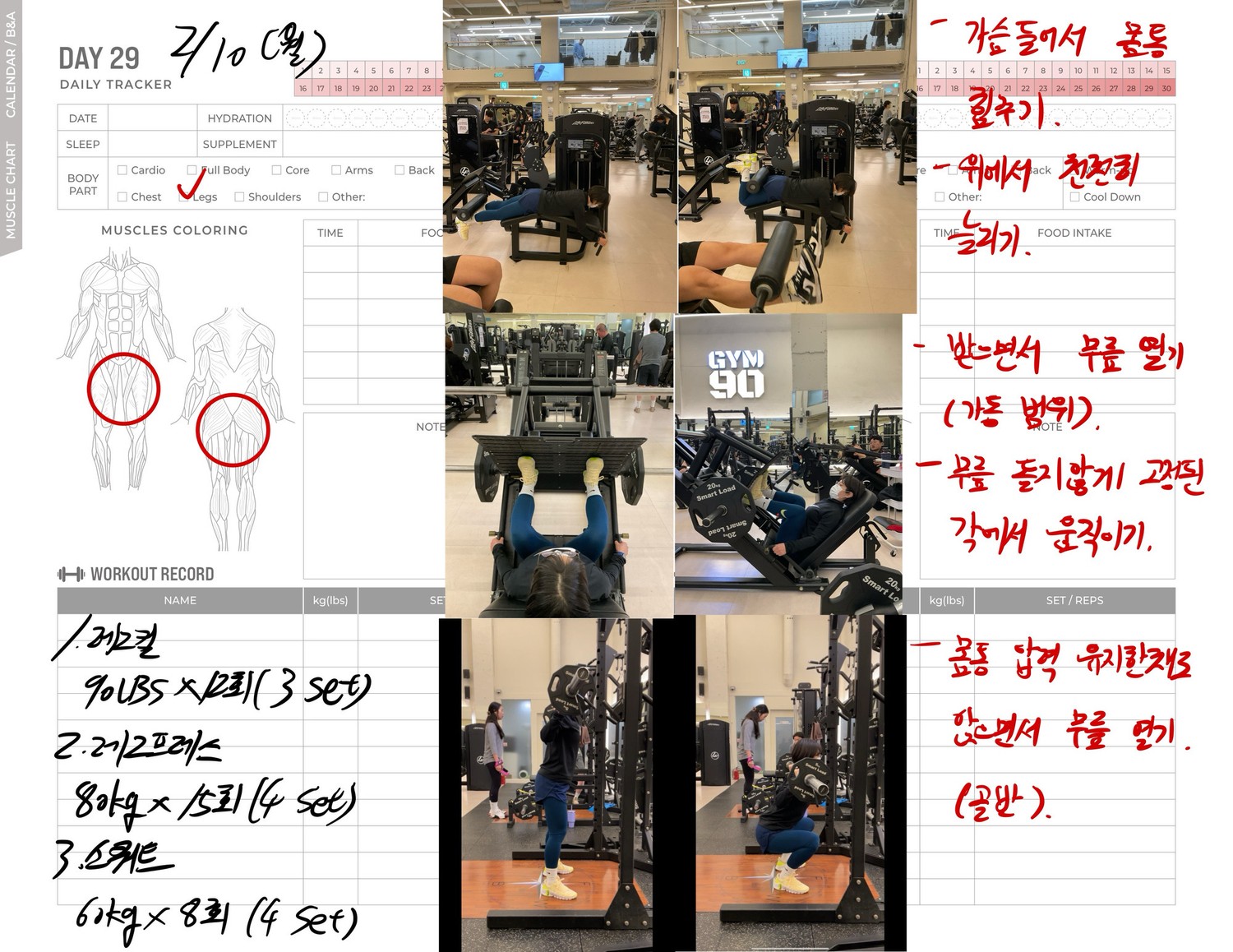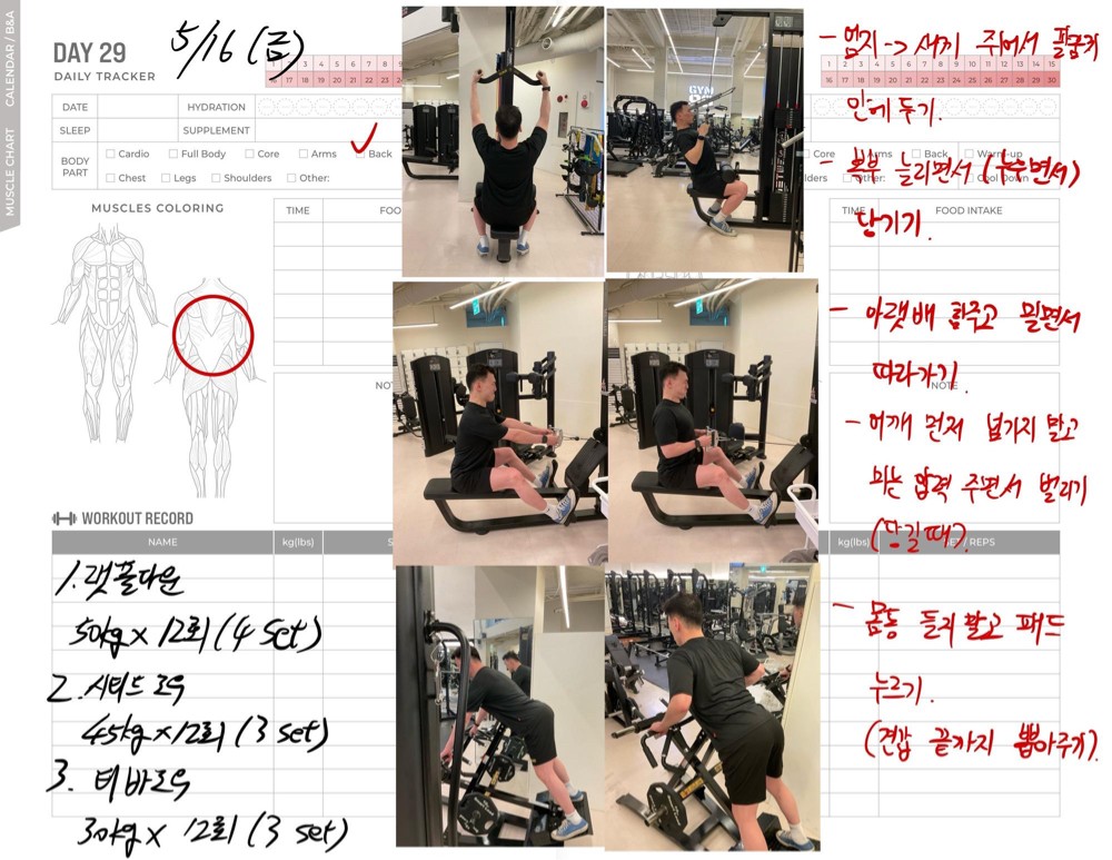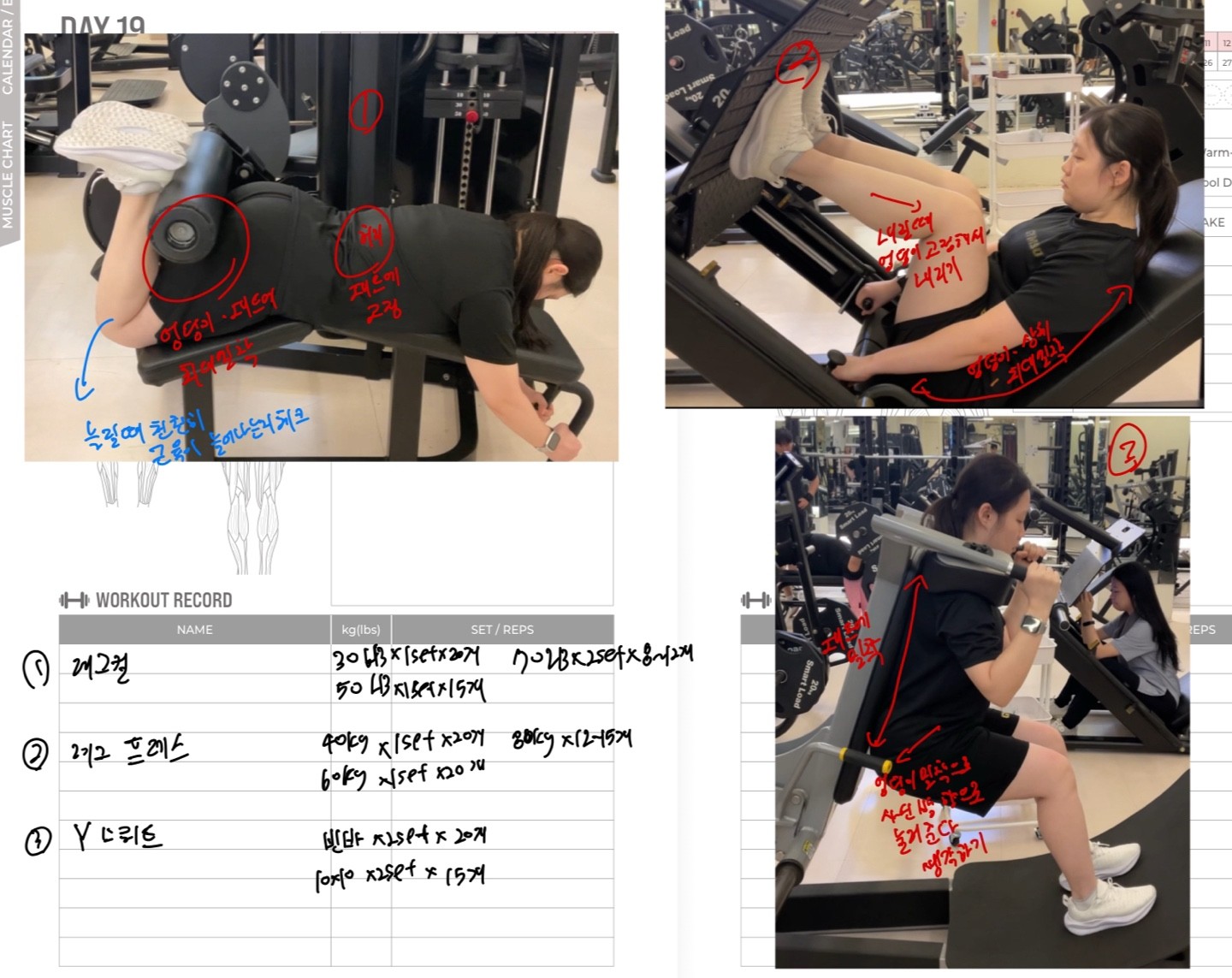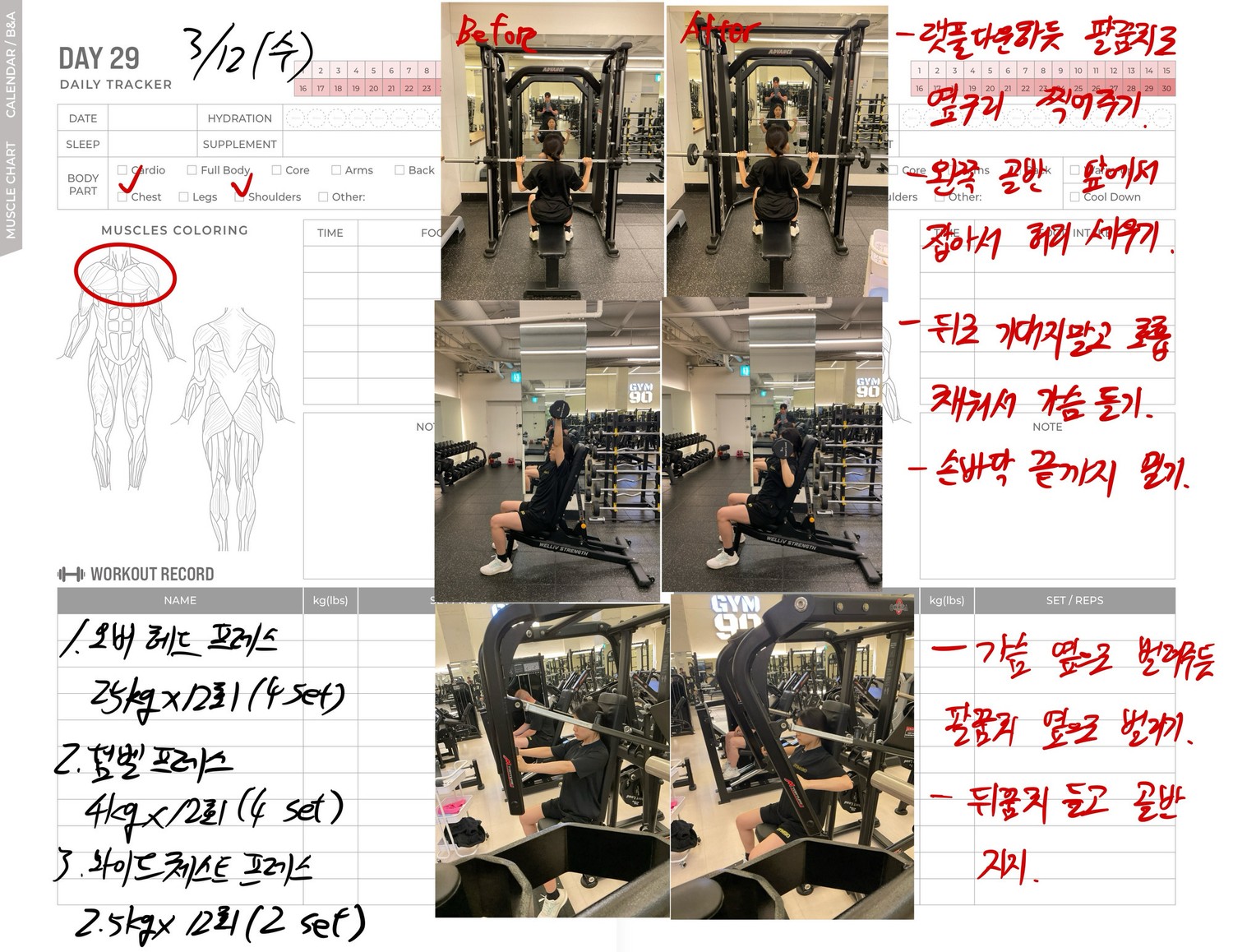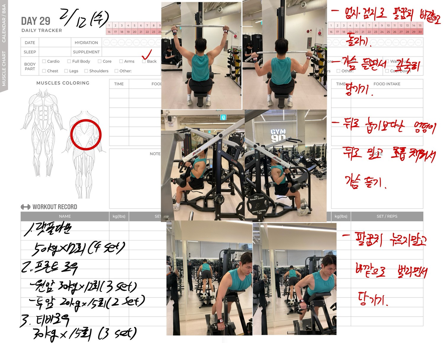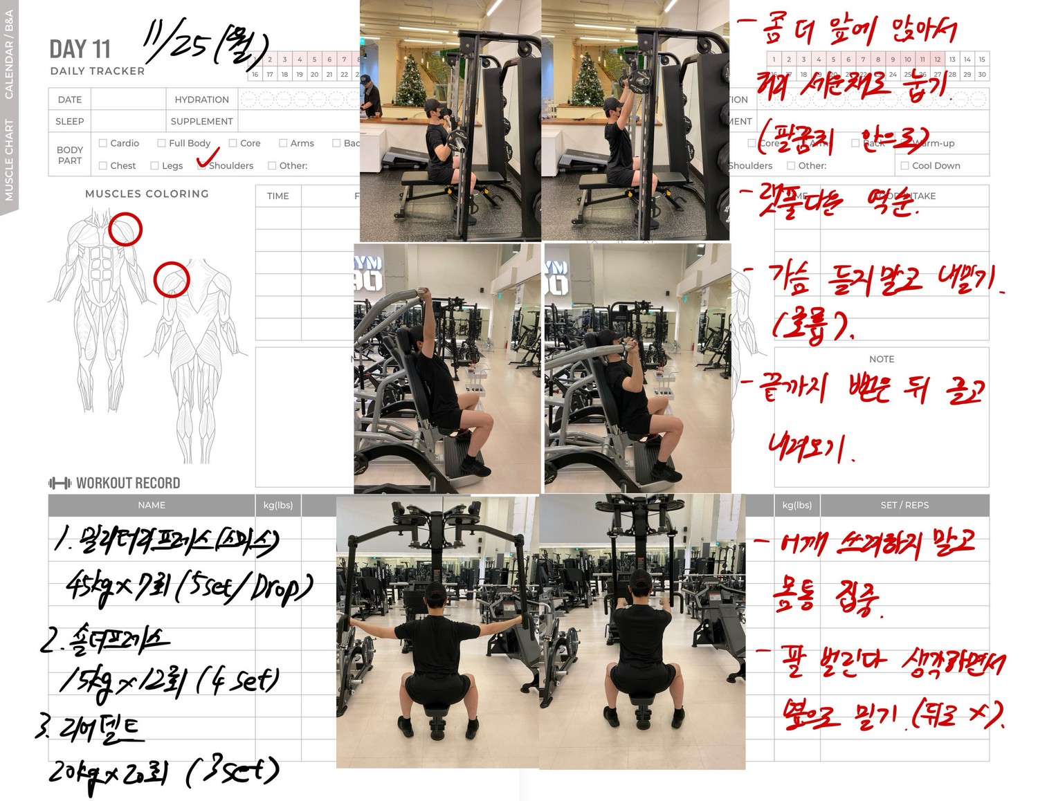 운동일지 작성 잘해주셔서 혼자 운동하는데