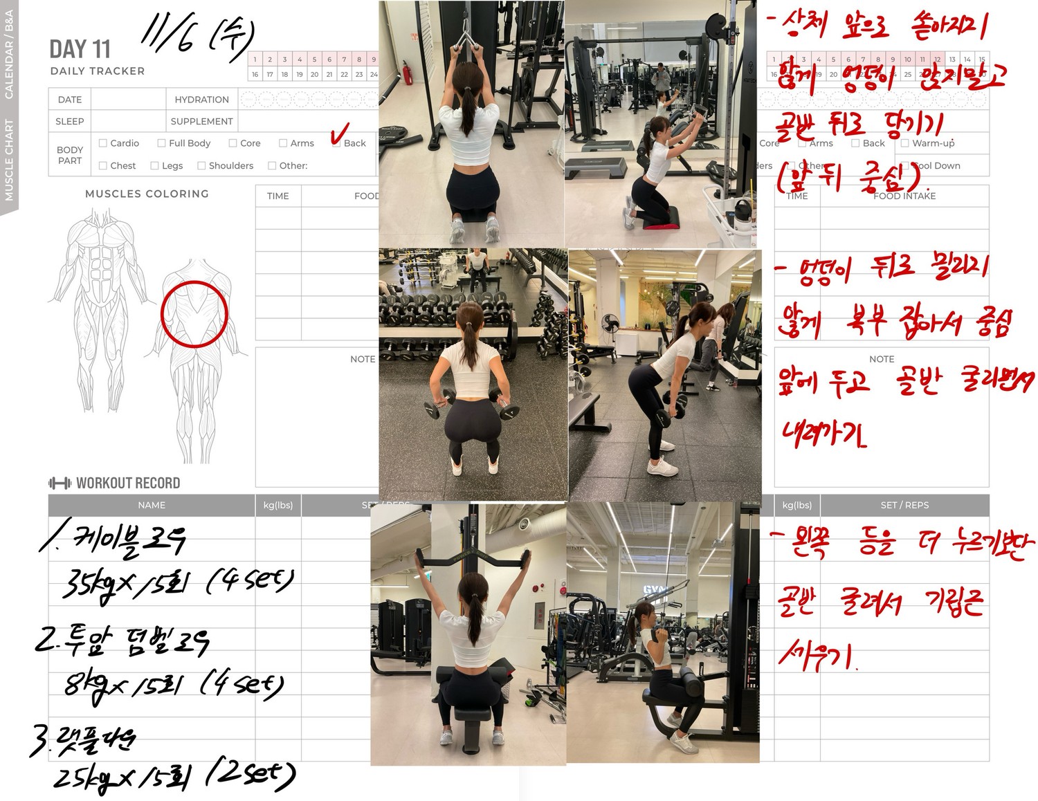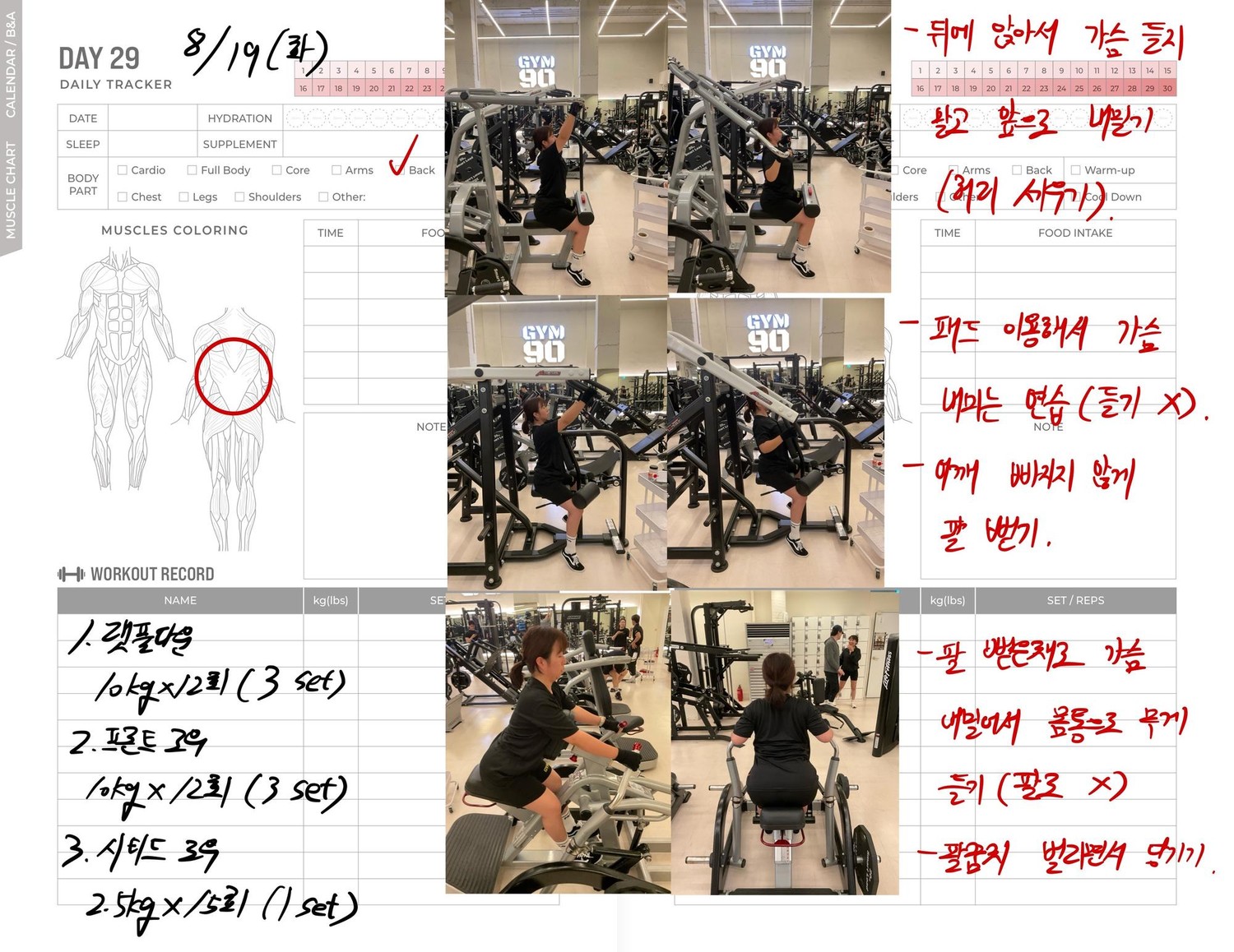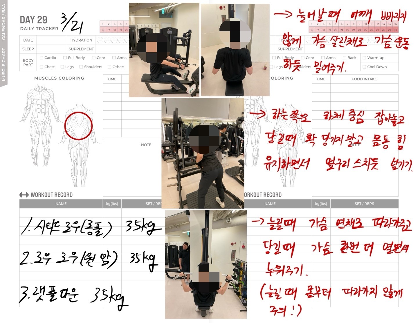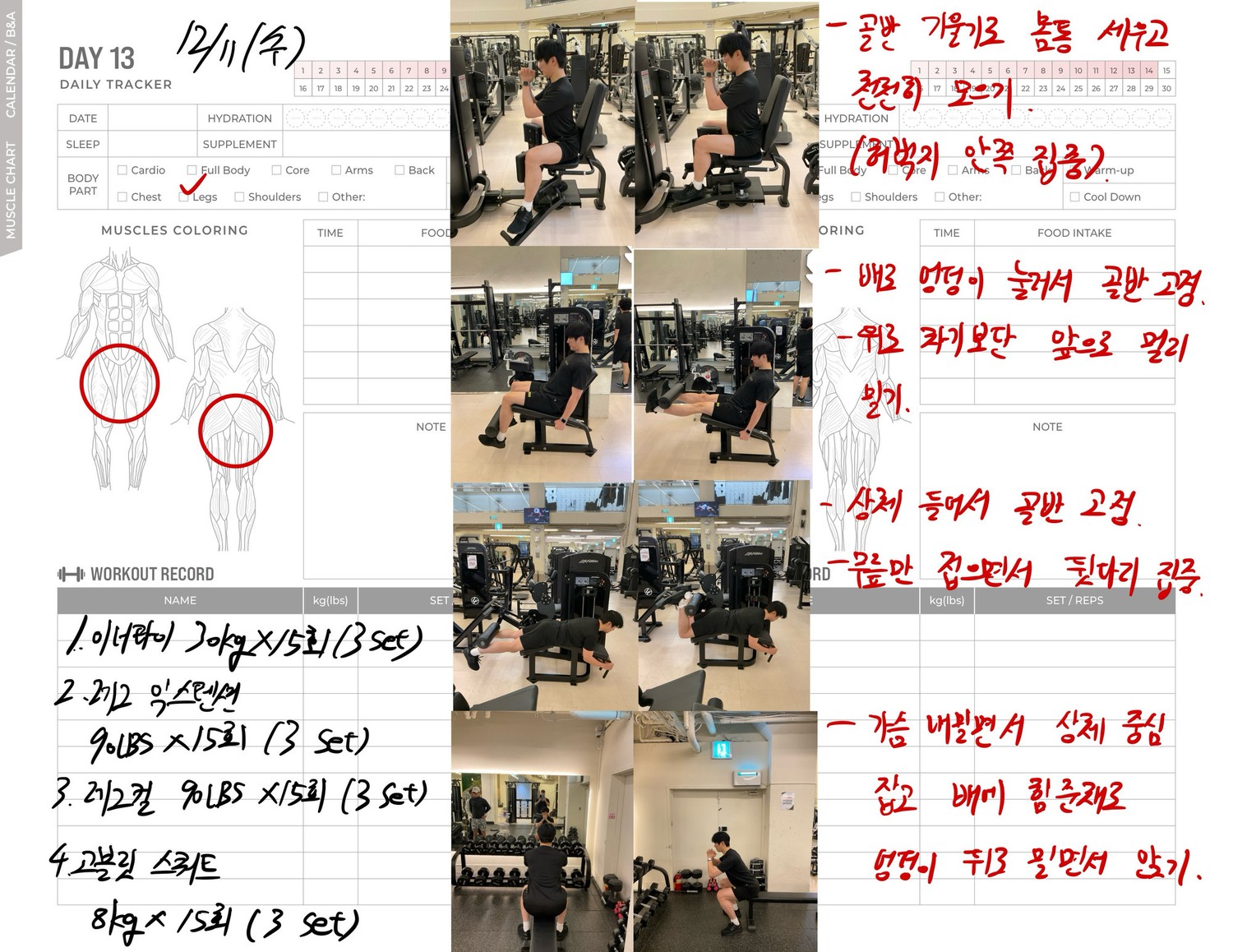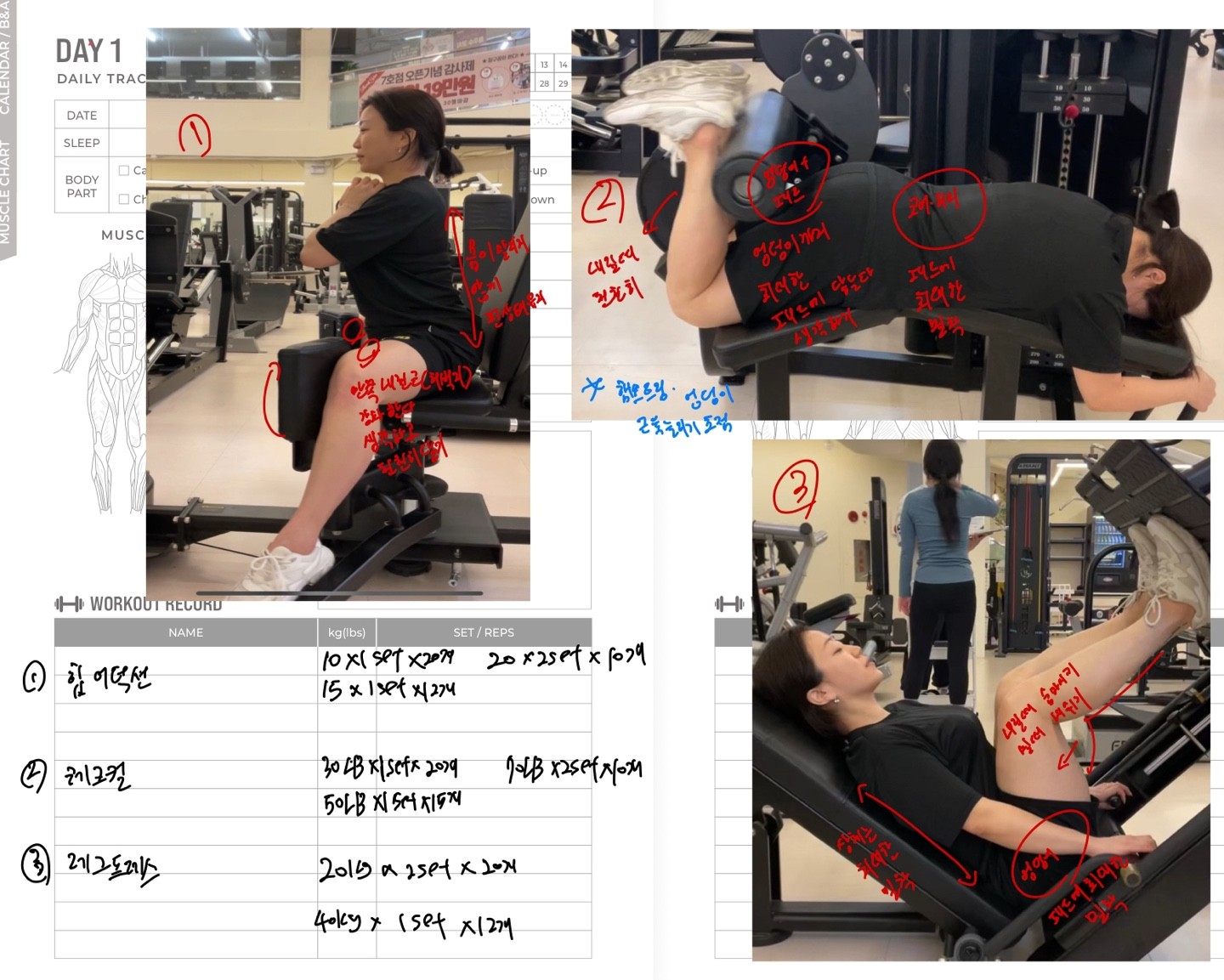 운동일지 작성 잘해주셔서 혼자 운동하는데