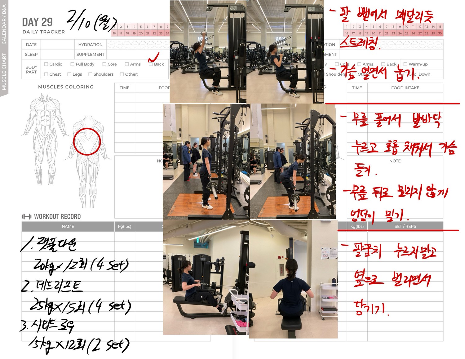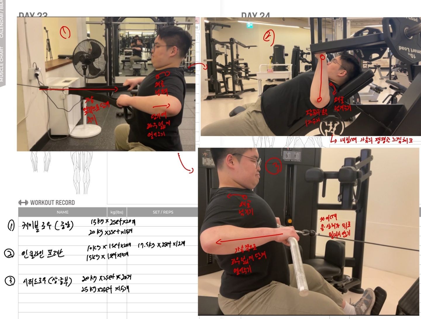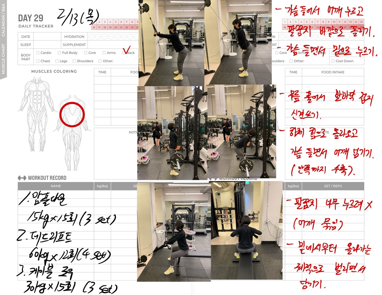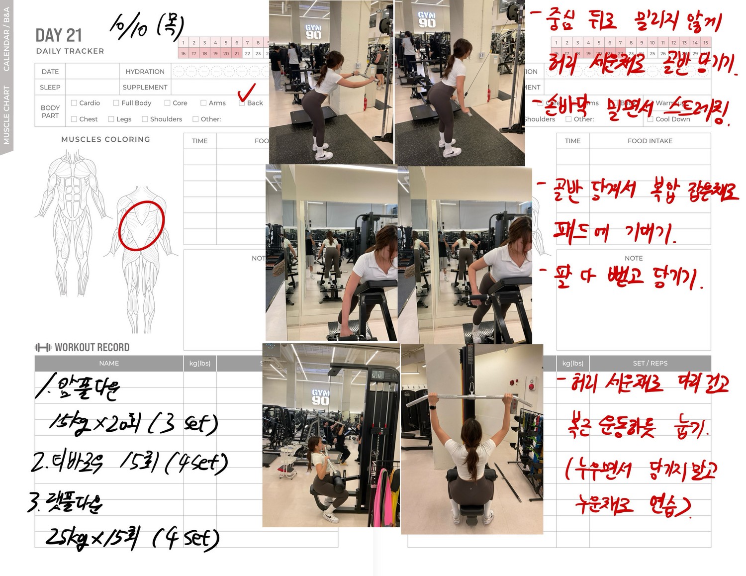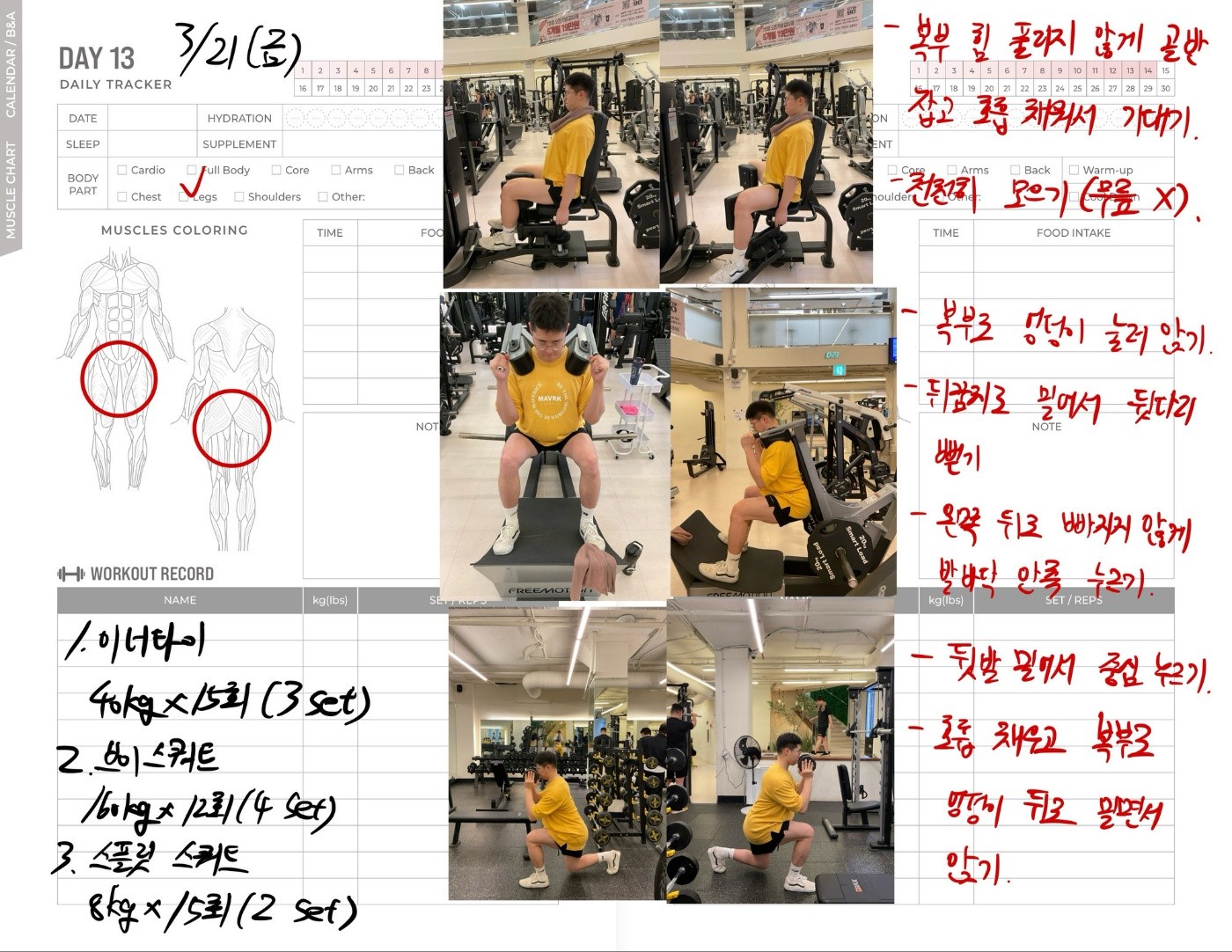 운동일지 작성 잘해주셔서 혼자 운동하는데