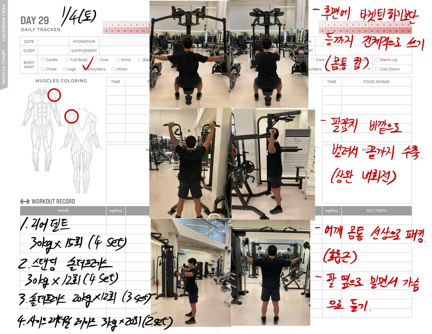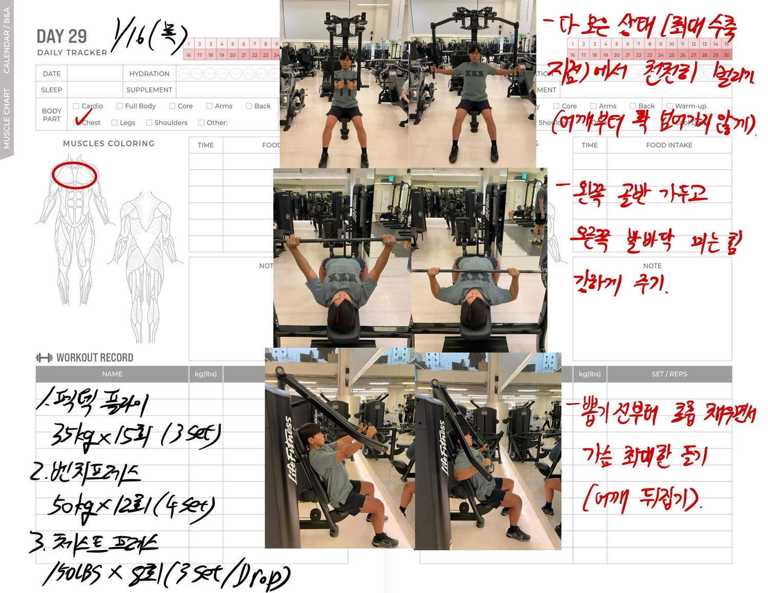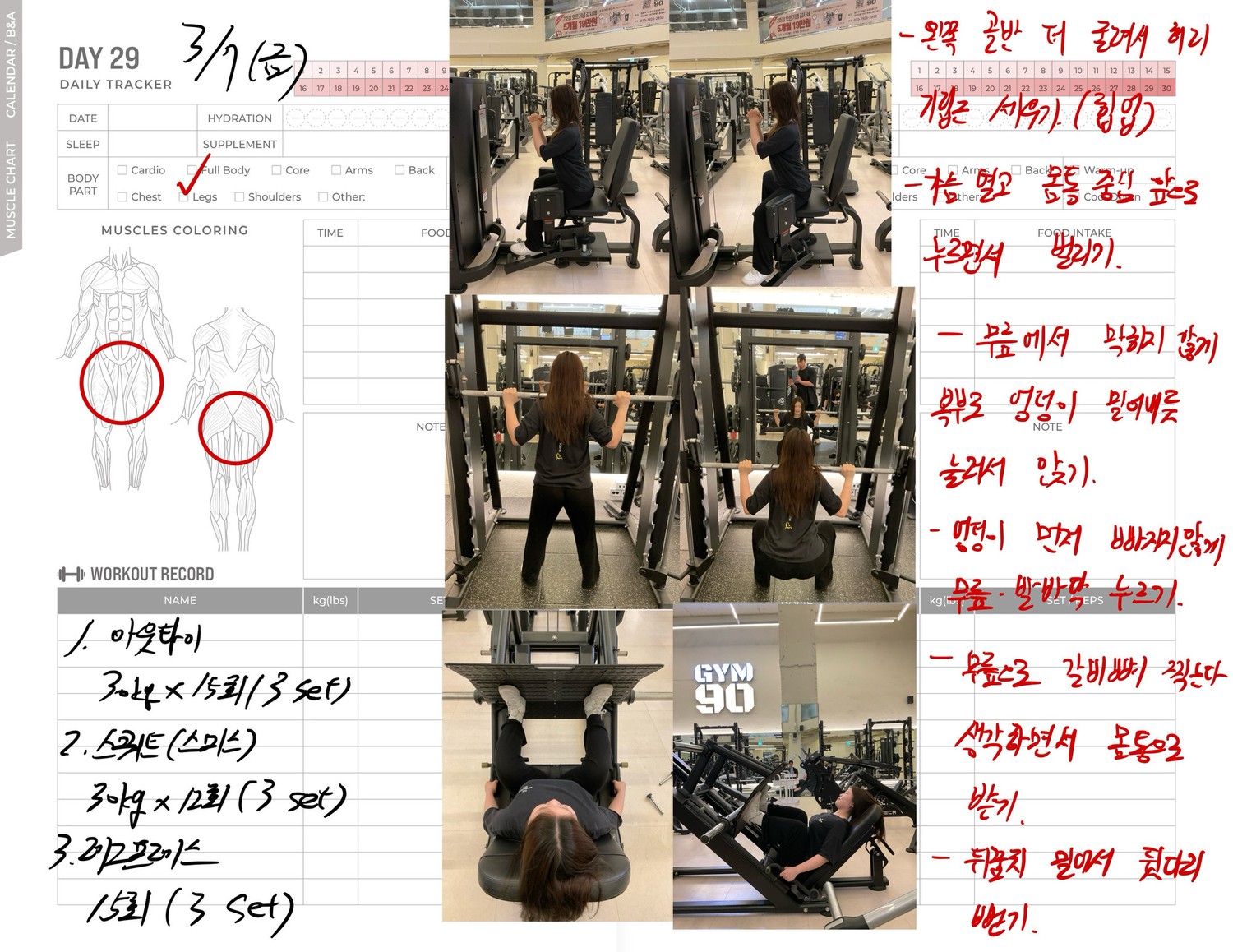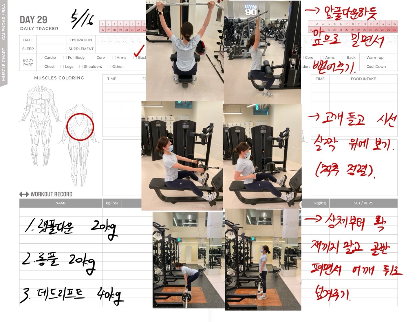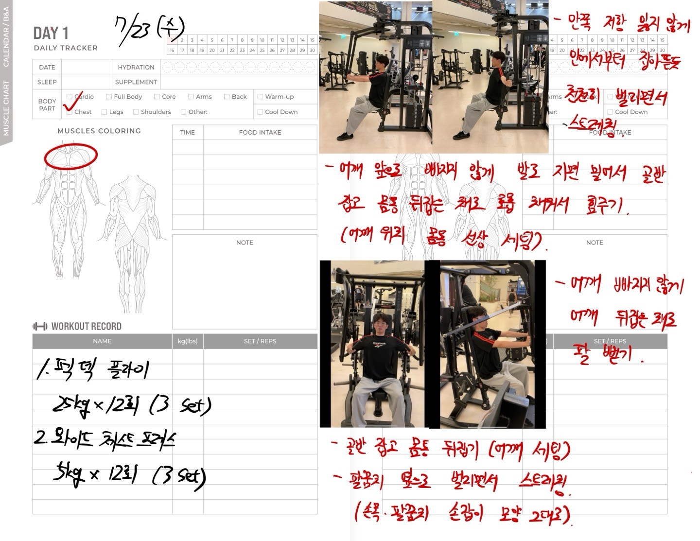 운동일지 작성 잘해주셔서 혼자 운동하는데