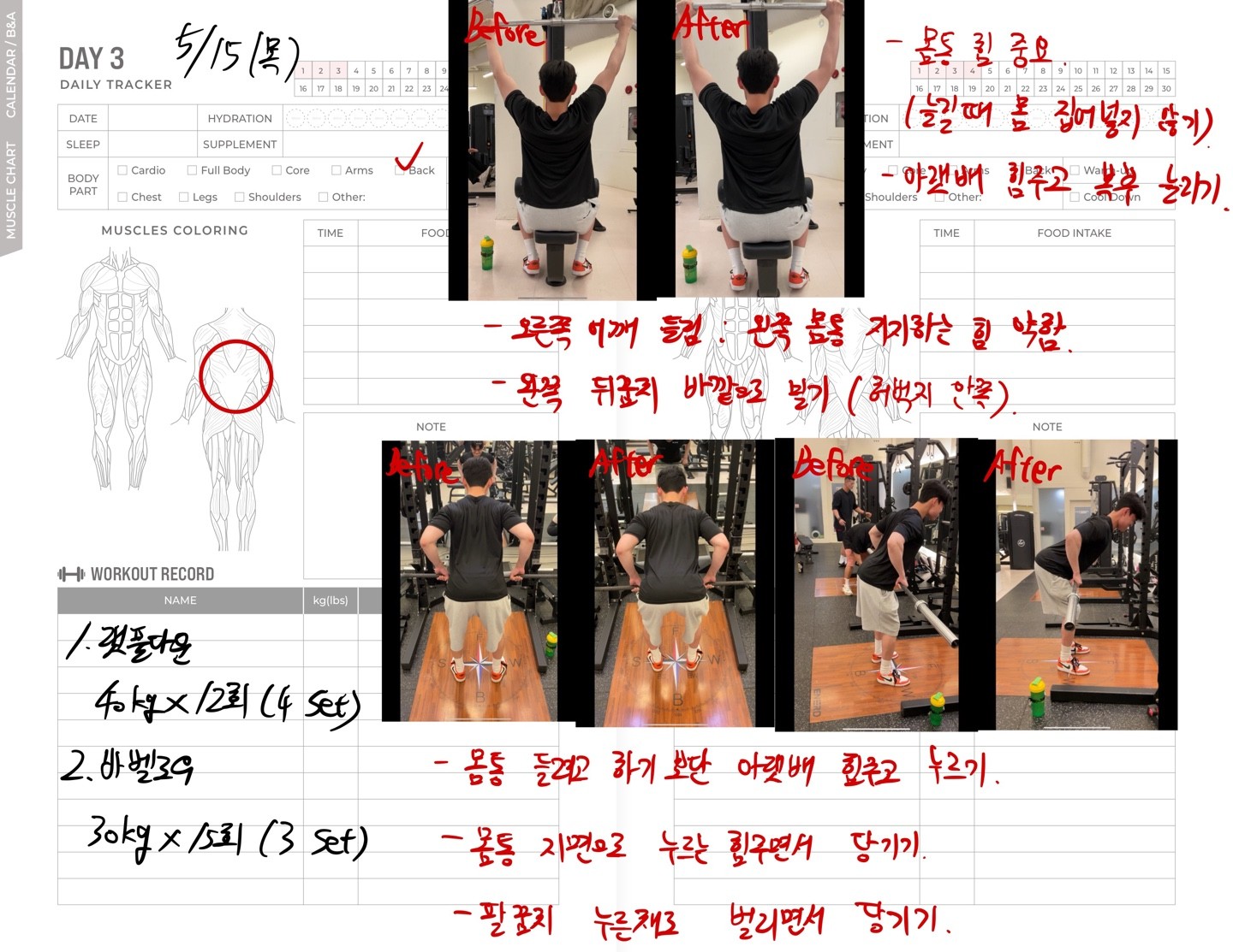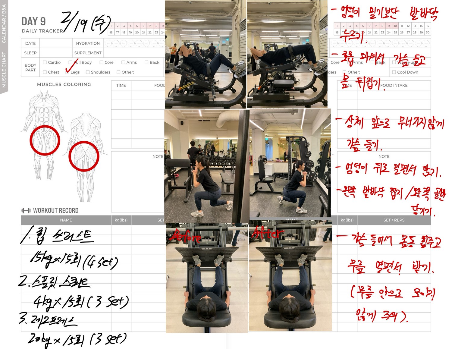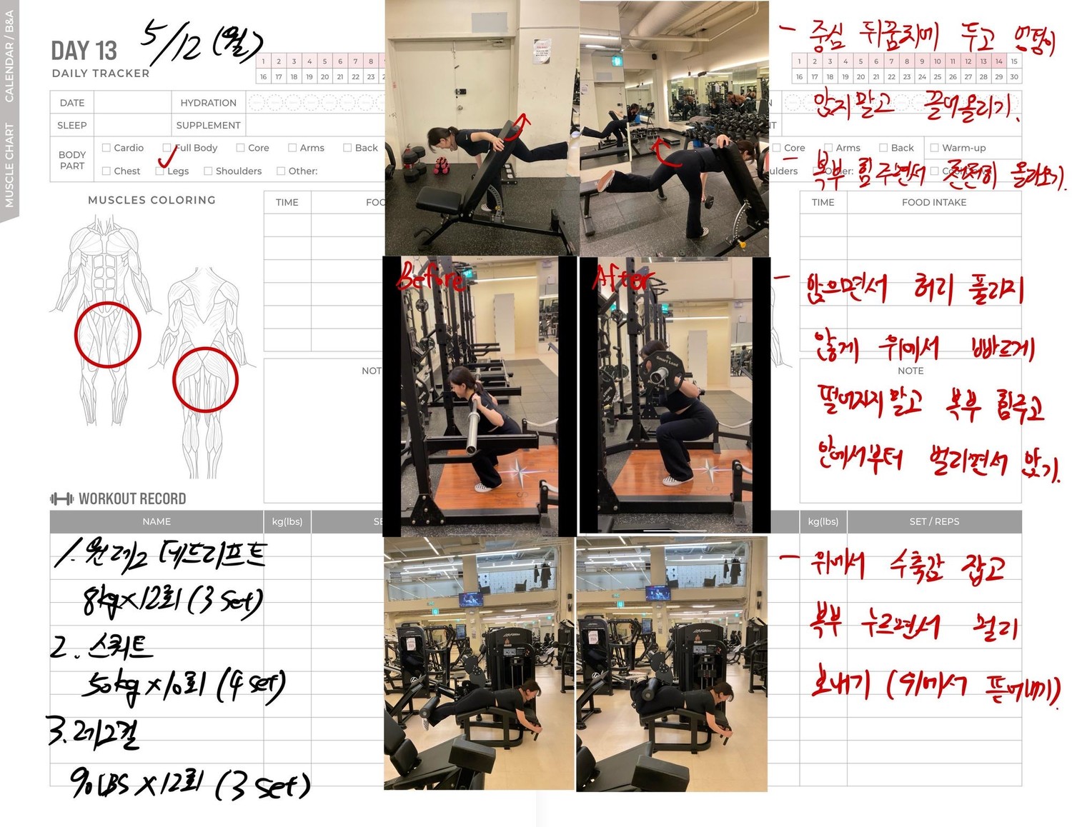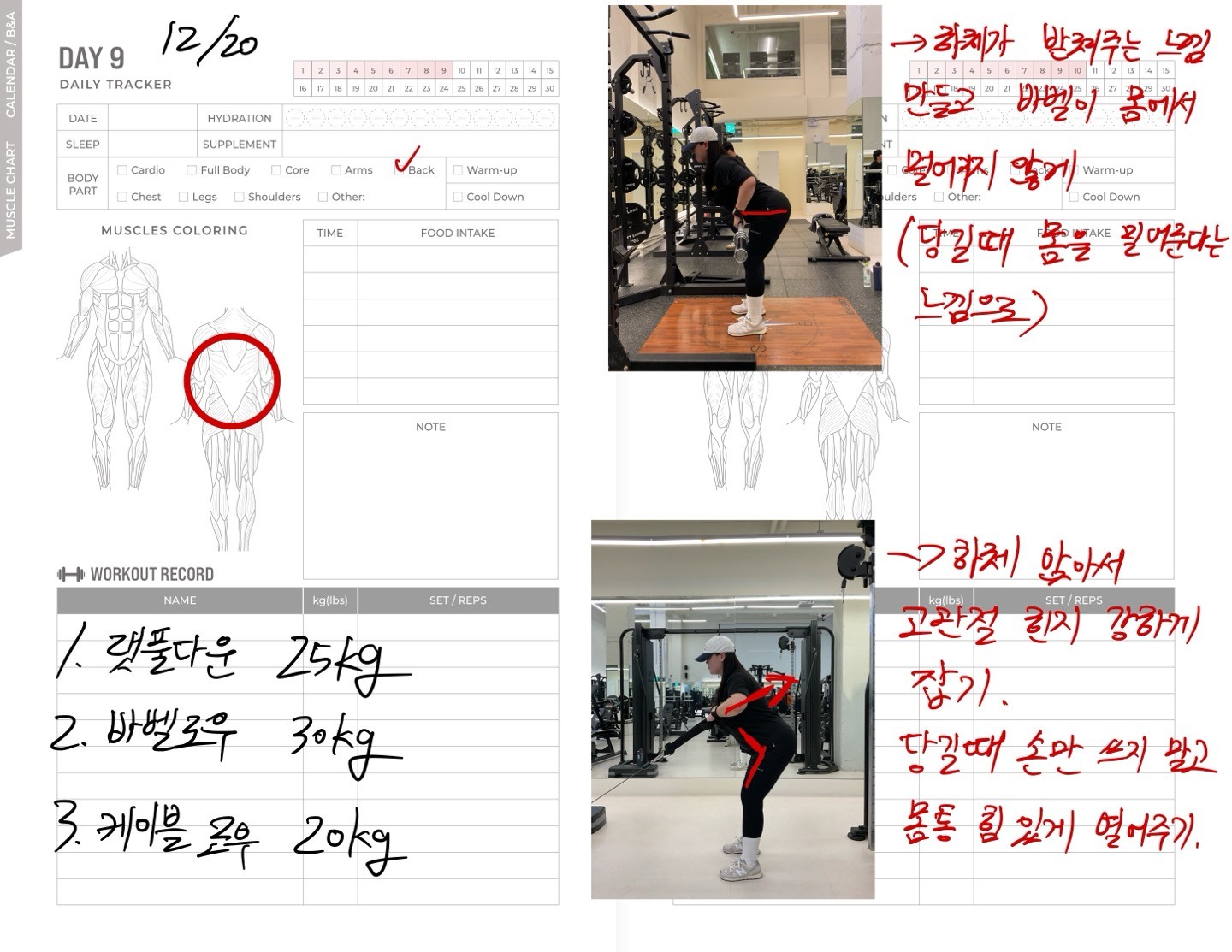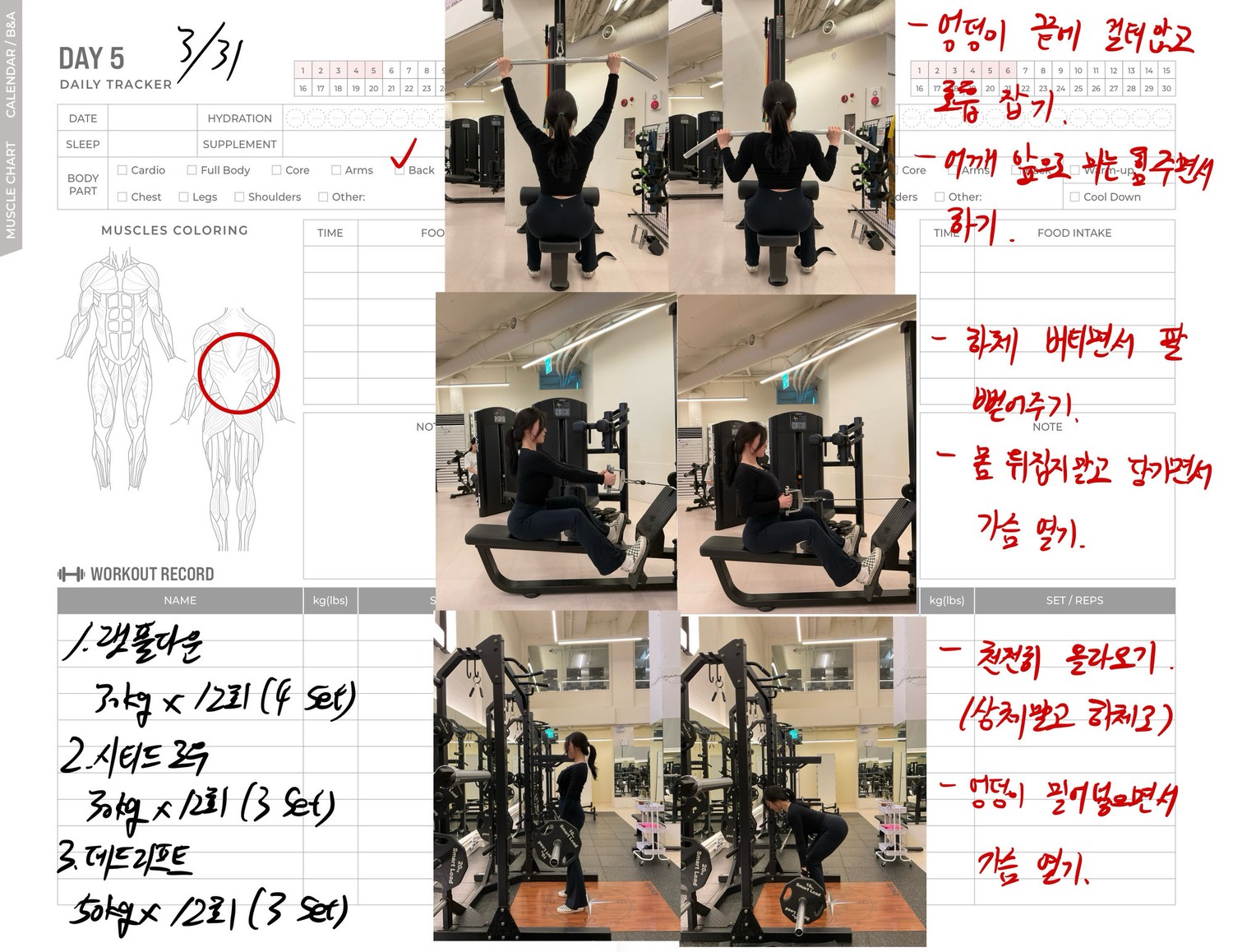 운동일지 작성 잘해주셔서 혼자 운동하는데