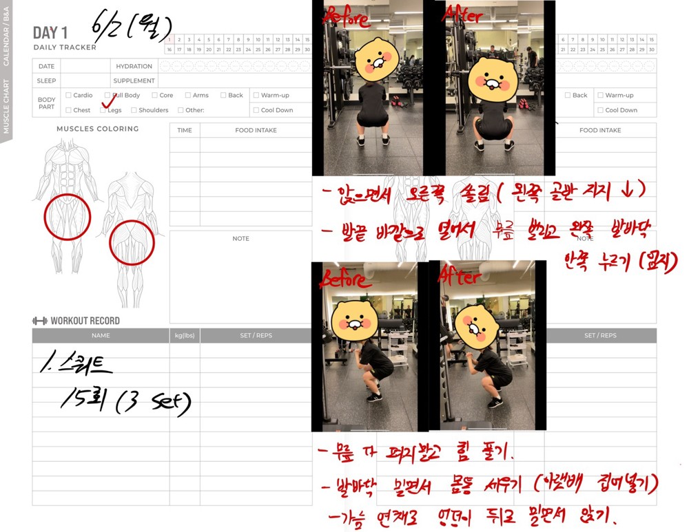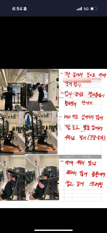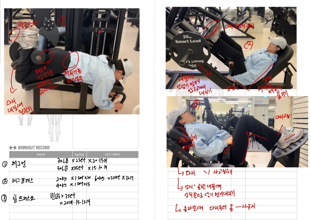 PT 진행 시에는 정확한 자세와 운동강도로 진행되었고, 개인운동시에도 정확히 운동할 수 있는 운동일지가 도움이 많이 되었어요