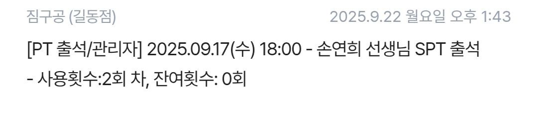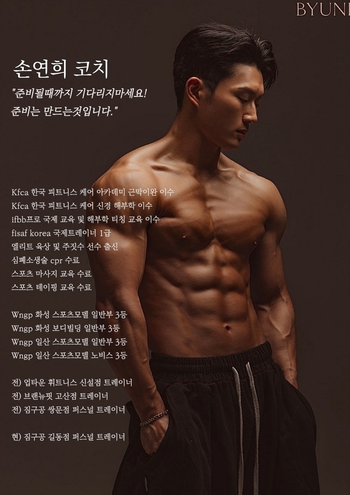 항상 친절하시고 칭찬도 많이해주셔서 기분좋게 운동할 수 있어요. 수업때도 꼼꼼히 알려주시고 끝난 후에도 일지 작성해주셔서 도움이 많이 됩니다!! 👍👍👍개인 PT를 받고도 1시간씩 개인 운동을 했었는데 나이에 맞지않게 체력이 엄청 좋은지 알았네요~ 나와는 다르게 딸이 PT 받고 온 날은 제대로 자극이 온다고 자랑아닌 자랑을.. 그래서 나도 자극을 받이보고 싶다는 욕심이 생겨서 준햑쌤께 등록!! 이제는 PT후 30분 이상 개인 운동하기 힘들어요, ㅎㅎ 체력이 엄청 좋은게 아니였네요, 매 수업시간마다 받은 동영상을 보면서 보완 할 부분을 알려 주시니 좋고 개인 운동 할 때 좋은 피드백이 됩니다, 실생활에서도 가슴을 열고 어깨를 누르고 배를 넣고 힘! 자세를 한 번씩 고치고 있어요, 복압이 강해지는 그날까지 가 볼까요? 등에 자극을 느끼며 글을 올려봅니다, 쌤👍👍 별이 ⭐️⭐️⭐️⭐️⭐️1.단순히 조금 운동해본 경험으로 알려주시는 것이 아니라, 정말 깊이 알고 가르치신다는 게 확실히 느껴집니다. 직접 정확한 시범을 보여주시고, 이해하기 쉽게 상세한 설명을 곁들여 주셔서 바로 이해가 됩니다. 2.회원의 수준과 페이스를 잘 맞춰주시며, 힘든 내색 없이 차분하게 지도해주십니다. 자세한 설명은 물론, 시간 약속도 철저히 지키셔서 신뢰가 갑니다. 단순히 숫자만 세거나 불필요한 대화를 하는 것이 아니라, 수업 내내 회원의 자세를 꼼꼼히 분석해 지도해주시는 점이 특히 인상 깊습니다. 3.팀장님 스스로 몸 관리를 철저히 하시기에 큰 동기부여가 됩니다. 4.공감 능력이 뛰어나시고 회원에 대한 이해도가 높으셔서 전혀 부담이 없습니다. 자연스러운 분위기 속에서 제 선택을 존중받는 느낌이 들어 좋았습니다.지인 소개로 손연희 코치님 등록했는데 정말 대만족입니다ㅎㅎ