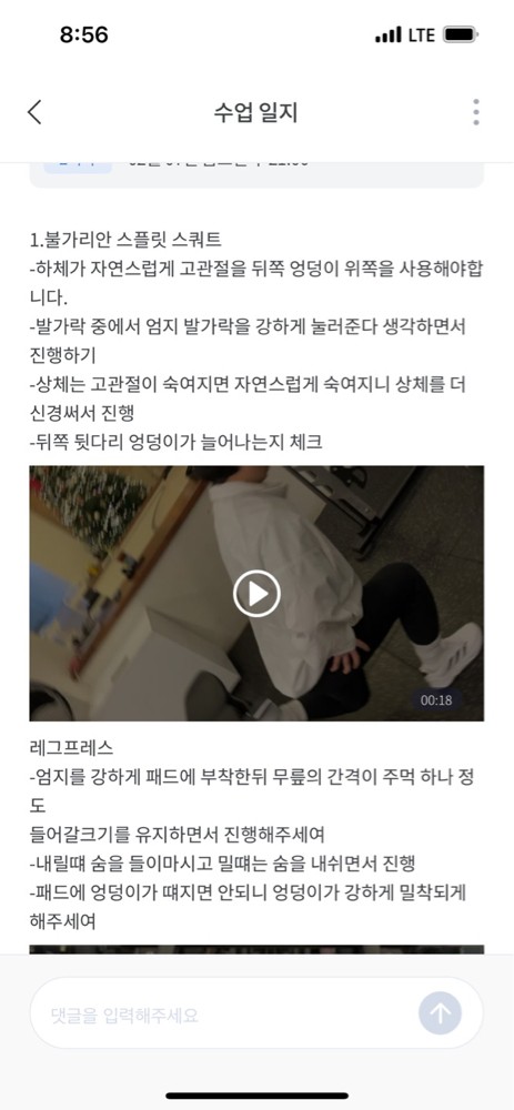 그리고 피드백 글과 영상이 같이 있어서 추후에 혼자 운동할 때