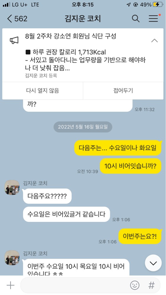 무려 2시간이나 상담, 몸에 대한 면밀한 분석을 해주셨고, 그결과 내가 운동을 하는 본연의 목적은 몸의 건강, 나를 위해 온전히 애쓰는 시간을 통한 마음의 건강이었는데 어느순간 단순 다이어트라는 변질된 목적으로 스트레스를 받고 있었구나라는 것을 깨닫게 되었습니다.