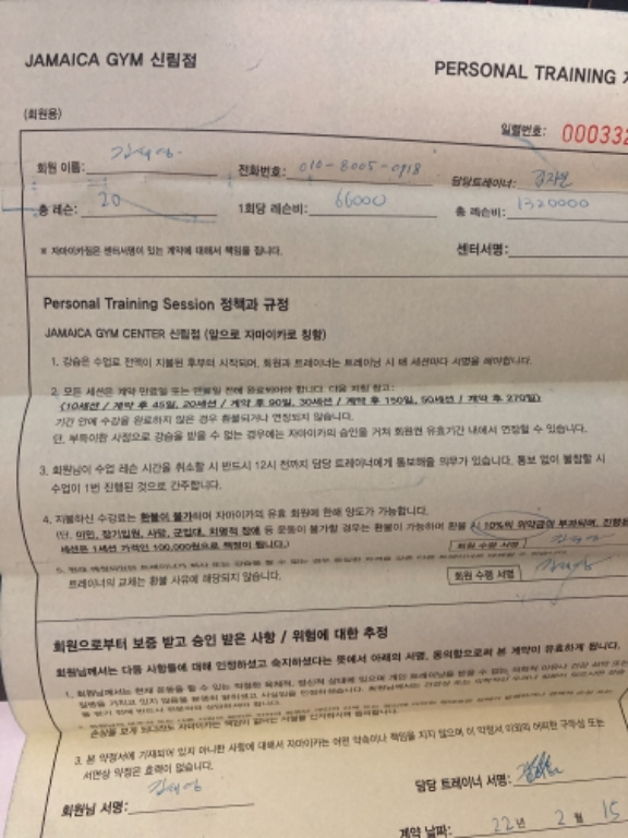그리고 원래 허리 디스크가 좀 있는 편인데 매번 세심하게 걱정해주시고 수업 커리큘럼도 신경써서 맞춤형으로 짜주셔서 부상 한번 없이 피티 마무리 했습니다 :)
