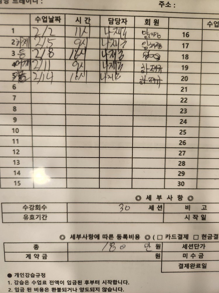 운동 자세나 스케쥴을 본인 일처럼 친절하고 자세하게 잡아주십니다 감사합니다~