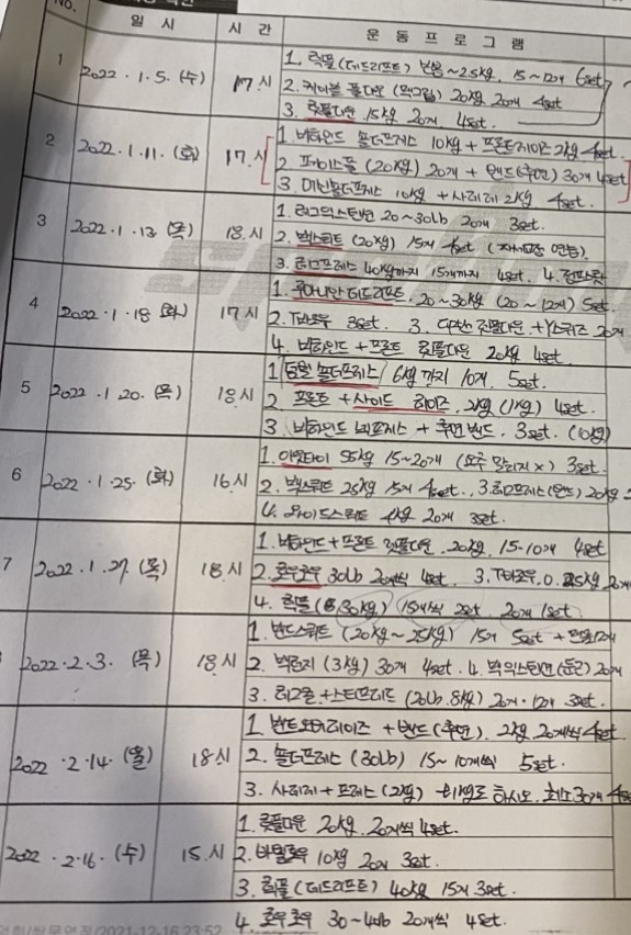 2. 운동능력 향상에 맞춰서 무게 증량에 대해 계획