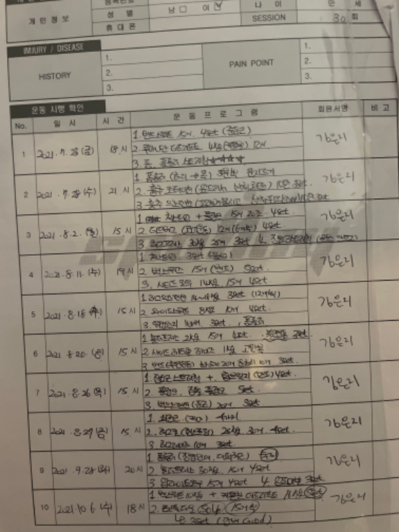 작년 8월부터 등록해 1년이 넘는 기간 동안 PT를 이용하고 있습니다.
