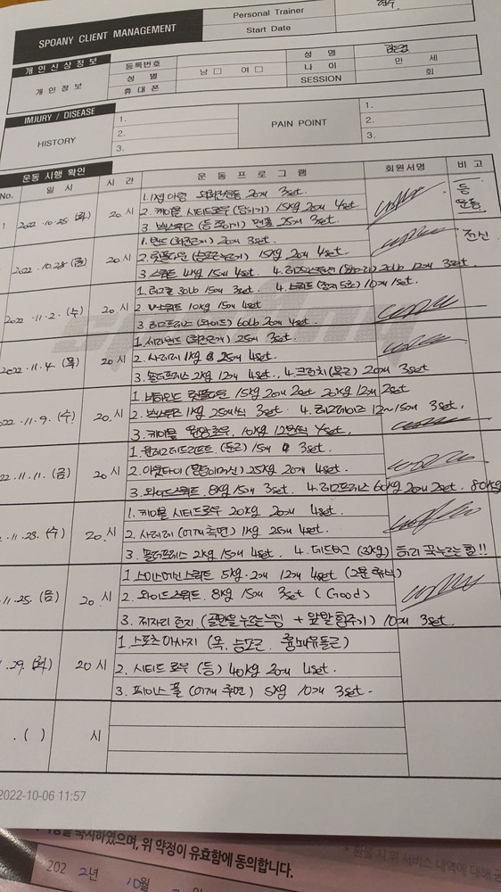 꼼꼼하게 잘 봐주셔요. 웨이트하면서 힘들어오는 부분도 잘 체크하면서 피티해주시구요. 저에게 맞는 칼로리와 영양으로 식단짜주셔서 운동하면서 배고픔에 허덕이면서 운동하지 않아도되는 신세계입니다. 오히려 짜주신 식단만큼 먹다보면 배부를정도에요. 피티받은날의 운동들 디테일하게 적어주셔서 나중에 까먹어도 보고 하면 든든합니다.