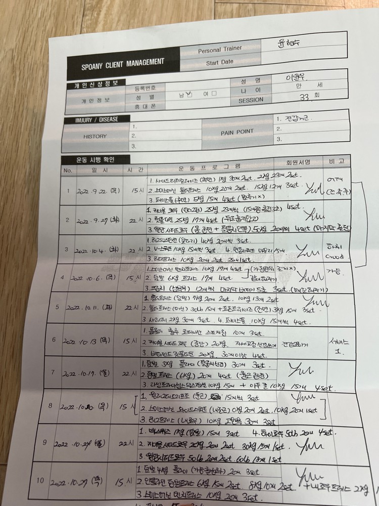 현수쌤과 이틀전에 pt30회 마무리 했습니다 ! 3년전 다른곳에서 pt좀 받다가 운동좀 하려고 했더니 코로나가 터지는 바람에 길을잃고 방황하다가 운동하는 습관을 다시 만들어 보고싶어서 현수쌤과 30회를 시작하게 되었습니다 ㅎㅎ