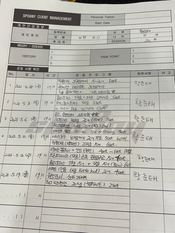 스포애니에서 선욱쌤과 운동한 지도 벌써 2년이 다 되어 가네요.