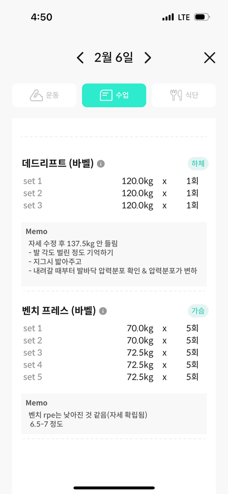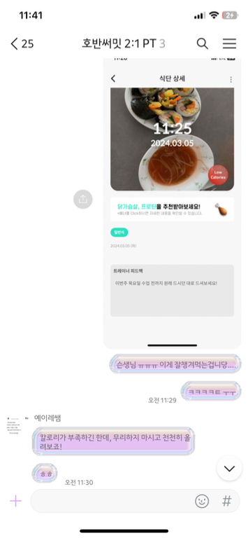 체중 감량을 위해 운동 뿐 아니라 식단도 살펴주셨습니다. 덕분에 체중은 감량하면서도 운동 볼륨은 올릴 수 있었던 것 같아요!