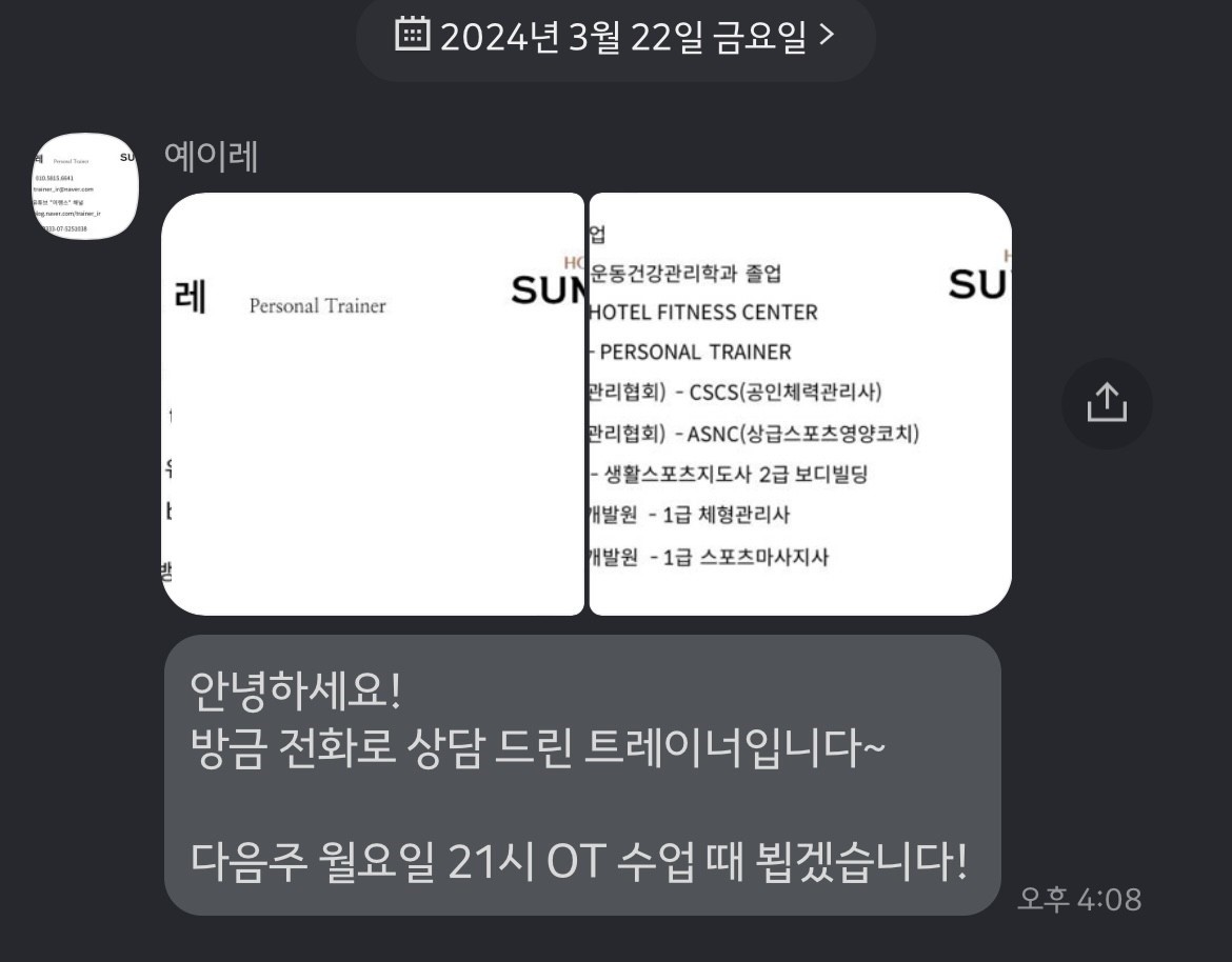 저처럼 체중감량을 하면서도 기초 자세를 배우고 싶은 분들께는 이레쌤 수업을 들어보시길 강추합니다!!혼자 운동을 하다 자세가 무너지는 것 같아서 PT를 찾는 중, 한체대 출신이라는 이야기를 듣고 믿음이 가서 등록했습니다.