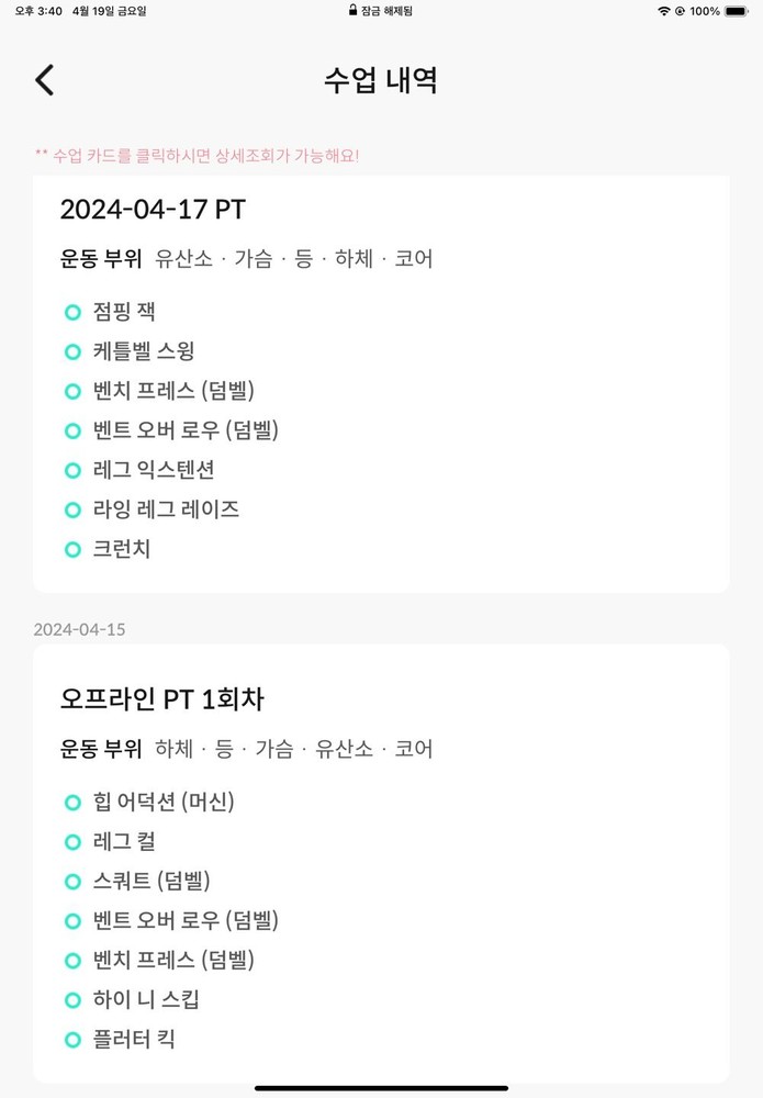 센티프짐에서 자체 개발한 어플을 통해서 체계적으로 관리를 해주시며 수업들은 내용을 복습하기도 너무 좋습니다!