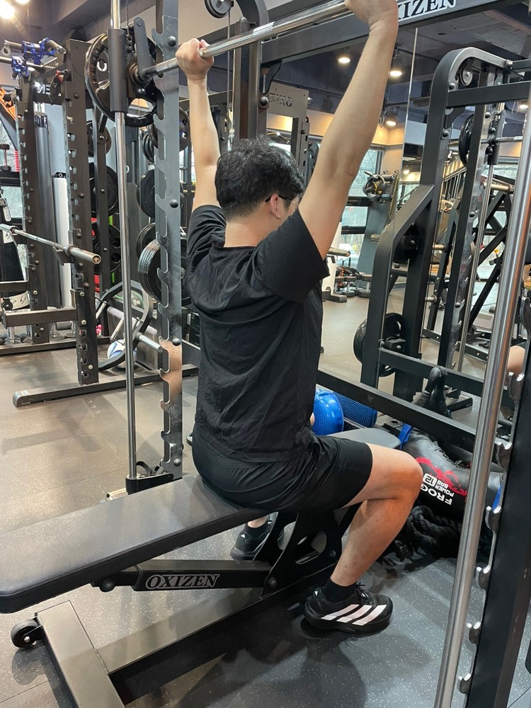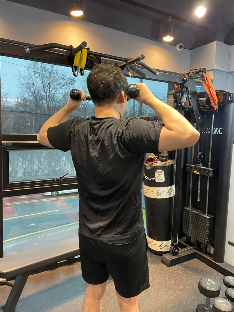 피티를 받으면서 찬일쌤께 목, 승모근 쪽이 안 좋아 이 운동을 하면 무리가 가서 아프다고 말씀드렸더니 자극점은 같은데 다른 자세를 알려주셔서 무리 안 하고 운동을 마칠 수 있었습니다.