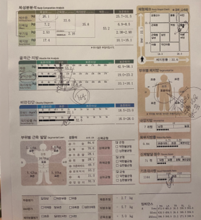 인바디 결과로서 위 내용에 대한 증빙을 마칩니다. 감사합니다.시설도 좋고 화랑쌤도 매번 친절하게 디테일하게 잘 알려주셔서 만족하면서 다니고 있어요:)